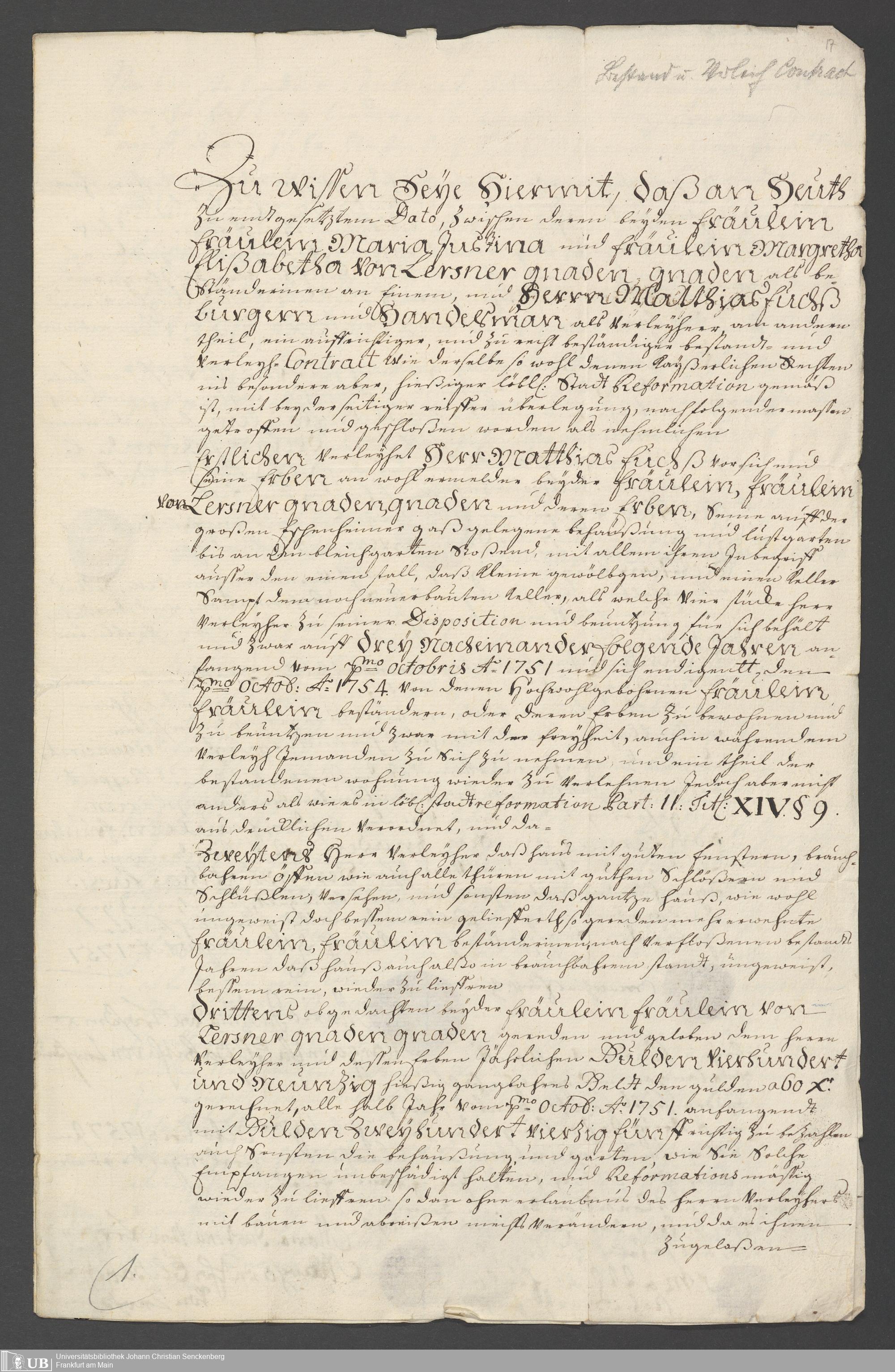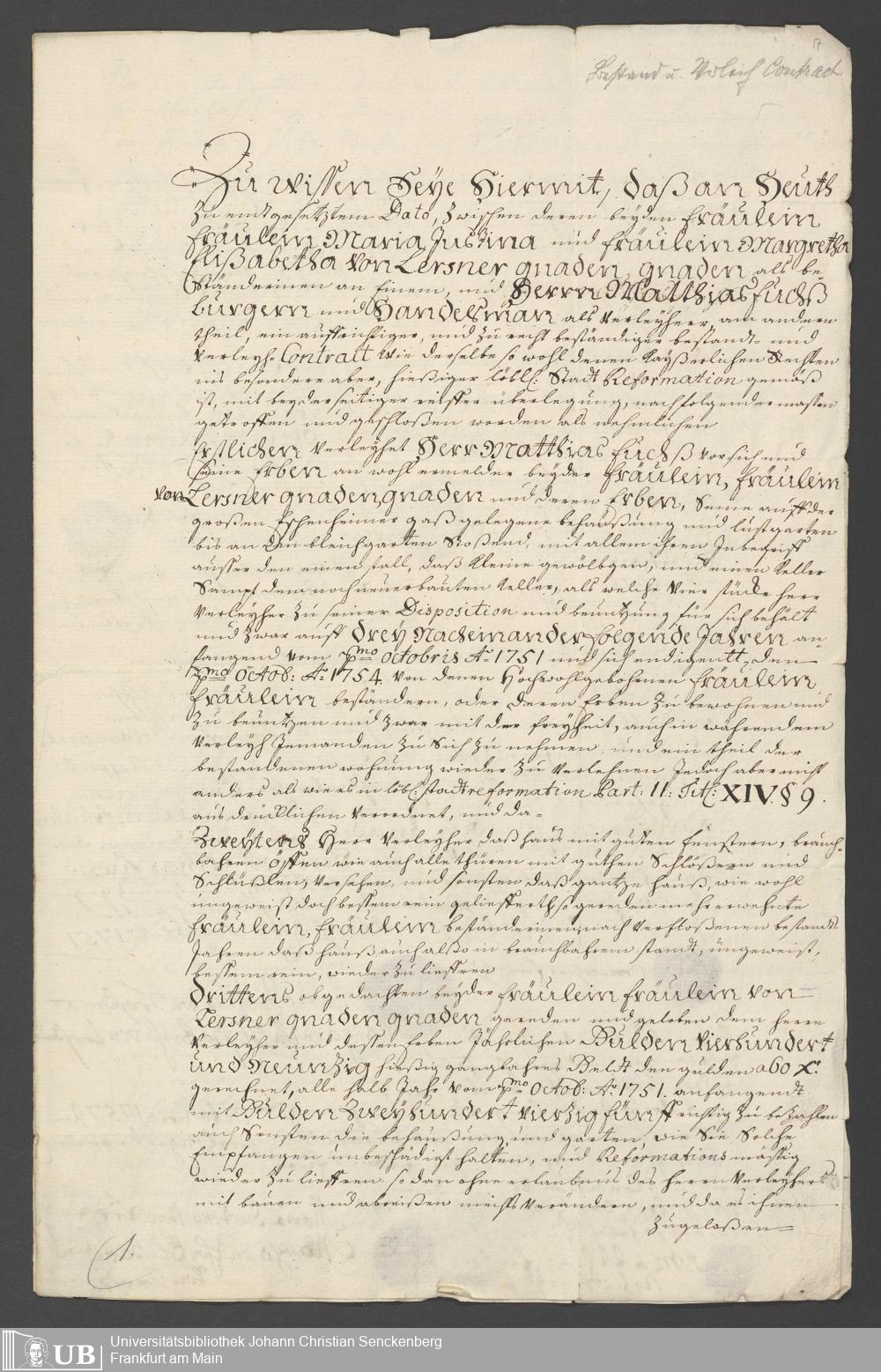 Na 31 Nachlass Johann Christian Senckenberg, 337 - Verträge über den Kauf des de-Werderschen Hauses