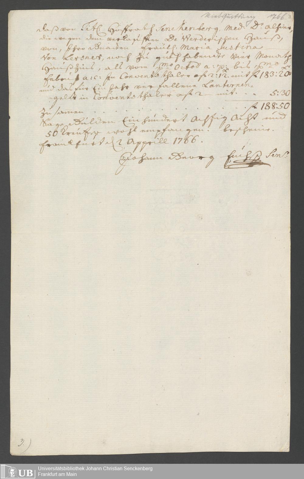 Na 31 Nachlass Johann Christian Senckenberg, 337 - Verträge über den Kauf des de-Werderschen Hauses