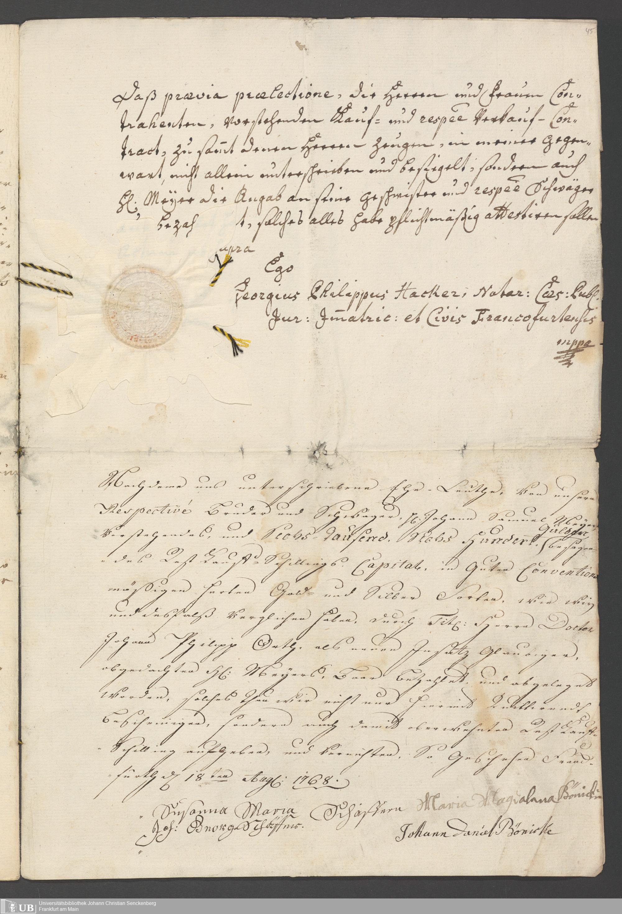 Na 31 Nachlass Johann Christian Senckenberg, 337 - Verträge über den Kauf des de-Werderschen Hauses