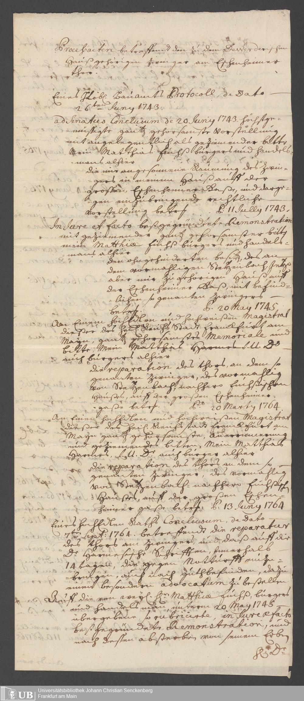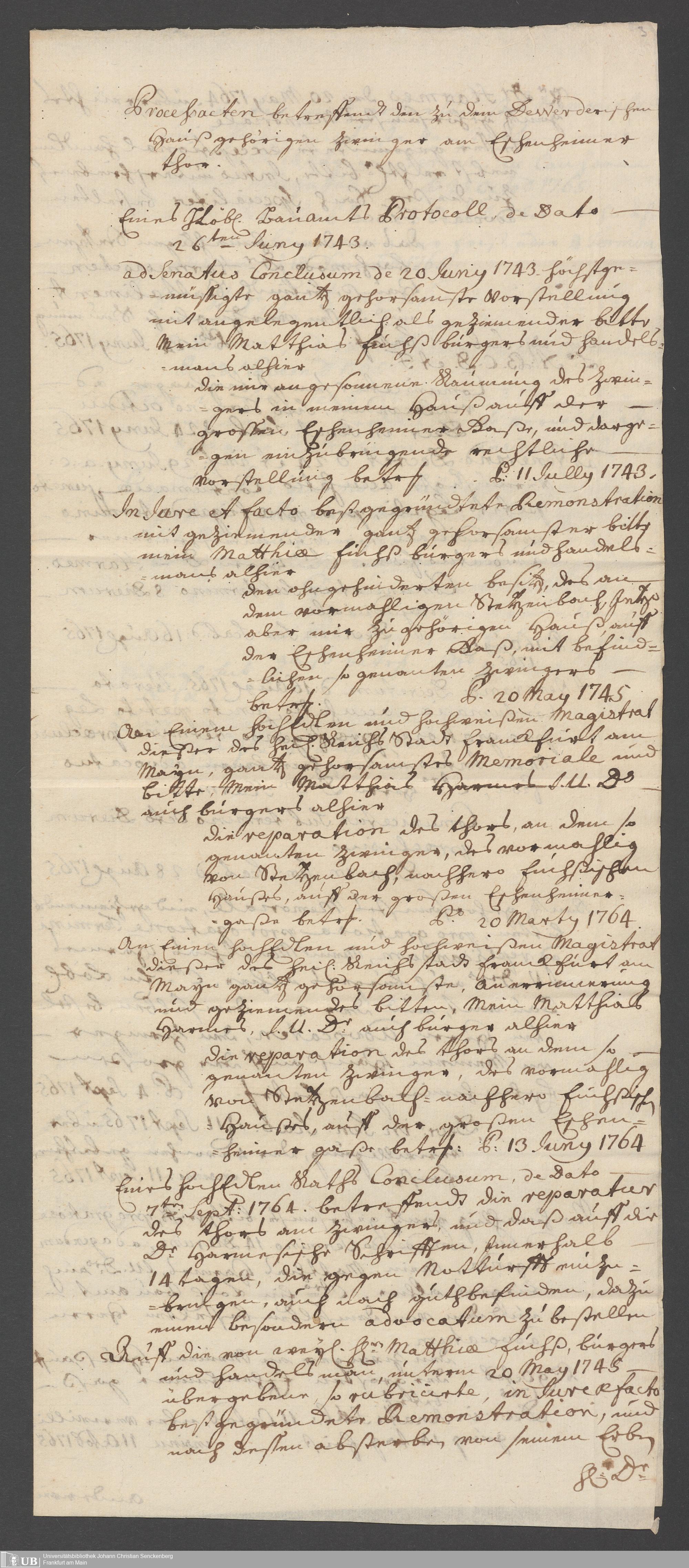 Na 31 Nachlass Johann Christian Senckenberg, 338 - Prozessakten über den Zwinger am de-Werderschen Haus