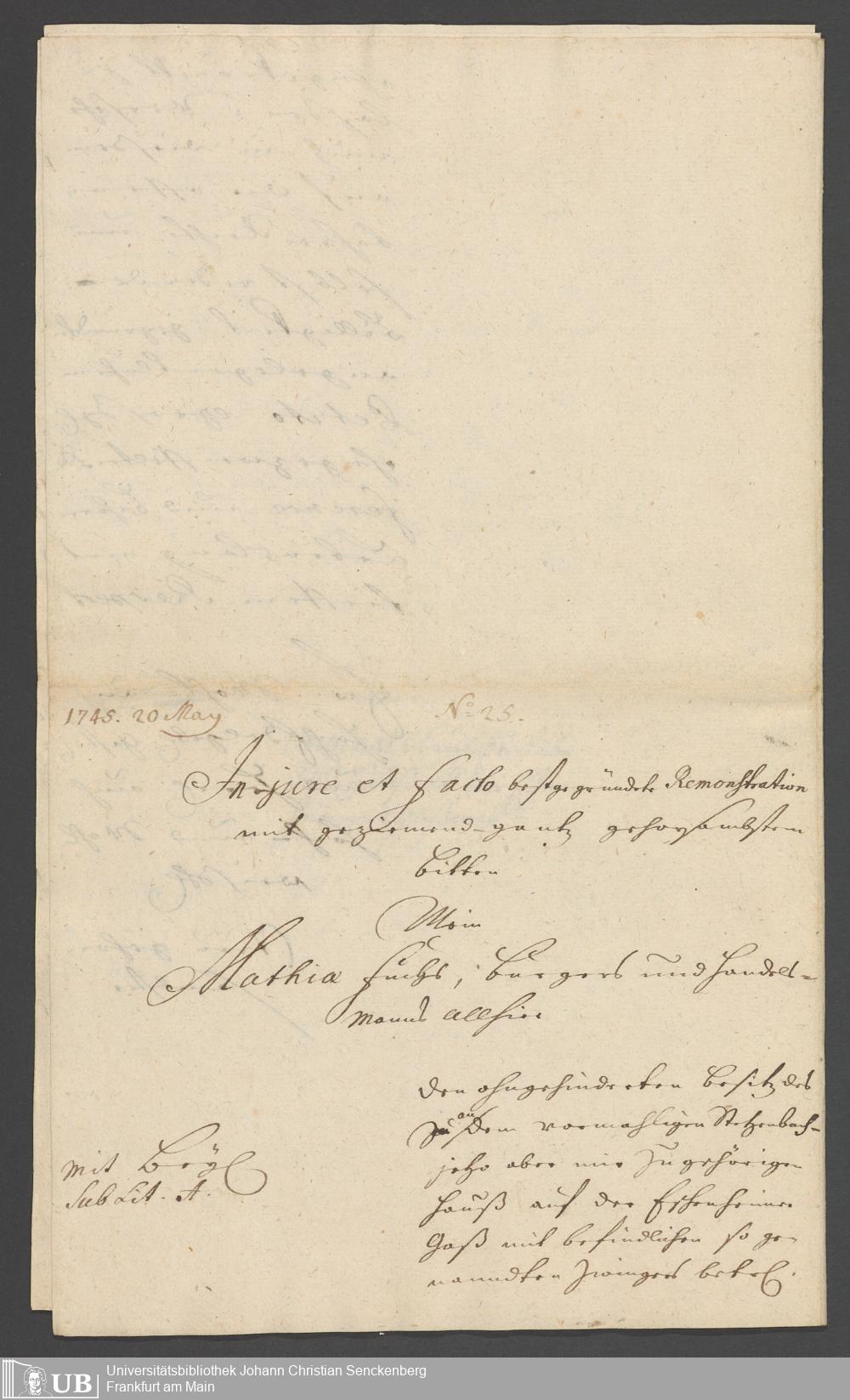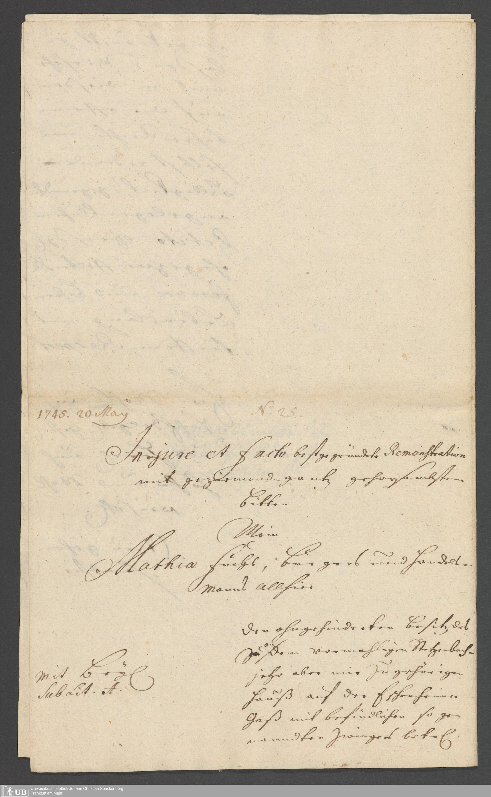 Na 31 Nachlass Johann Christian Senckenberg, 338 - Prozessakten über den Zwinger am de-Werderschen Haus