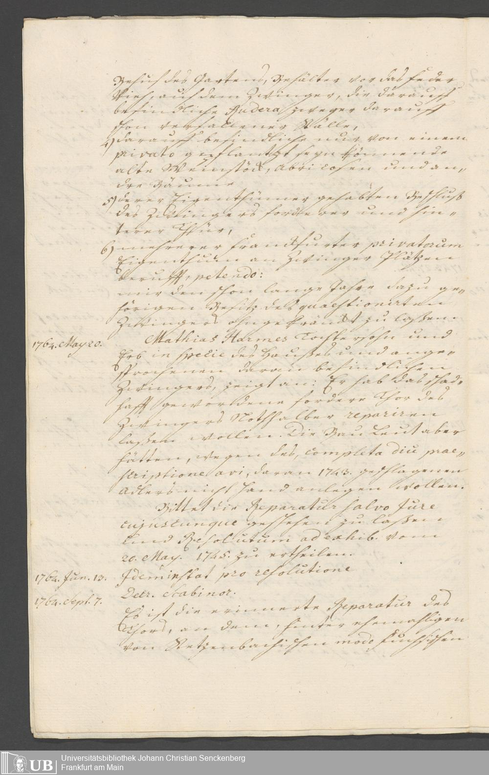 Na 31 Nachlass Johann Christian Senckenberg, 338 - Prozessakten über den Zwinger am de-Werderschen Haus