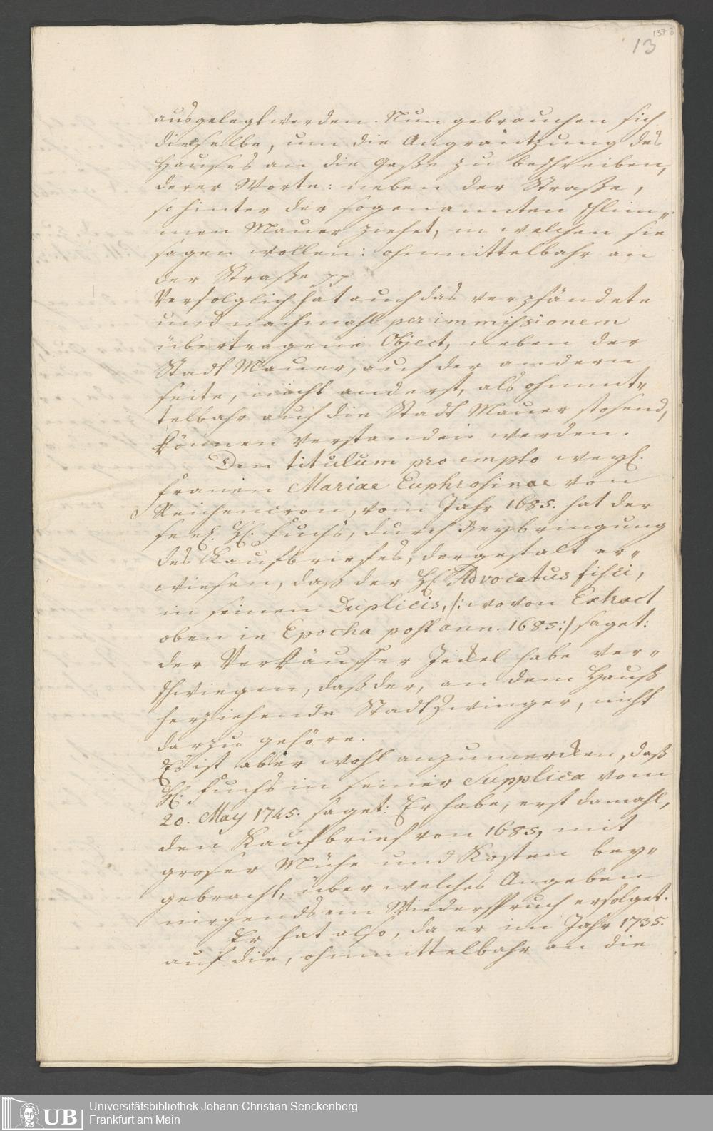 Na 31 Nachlass Johann Christian Senckenberg, 338 - Prozessakten über den Zwinger am de-Werderschen Haus