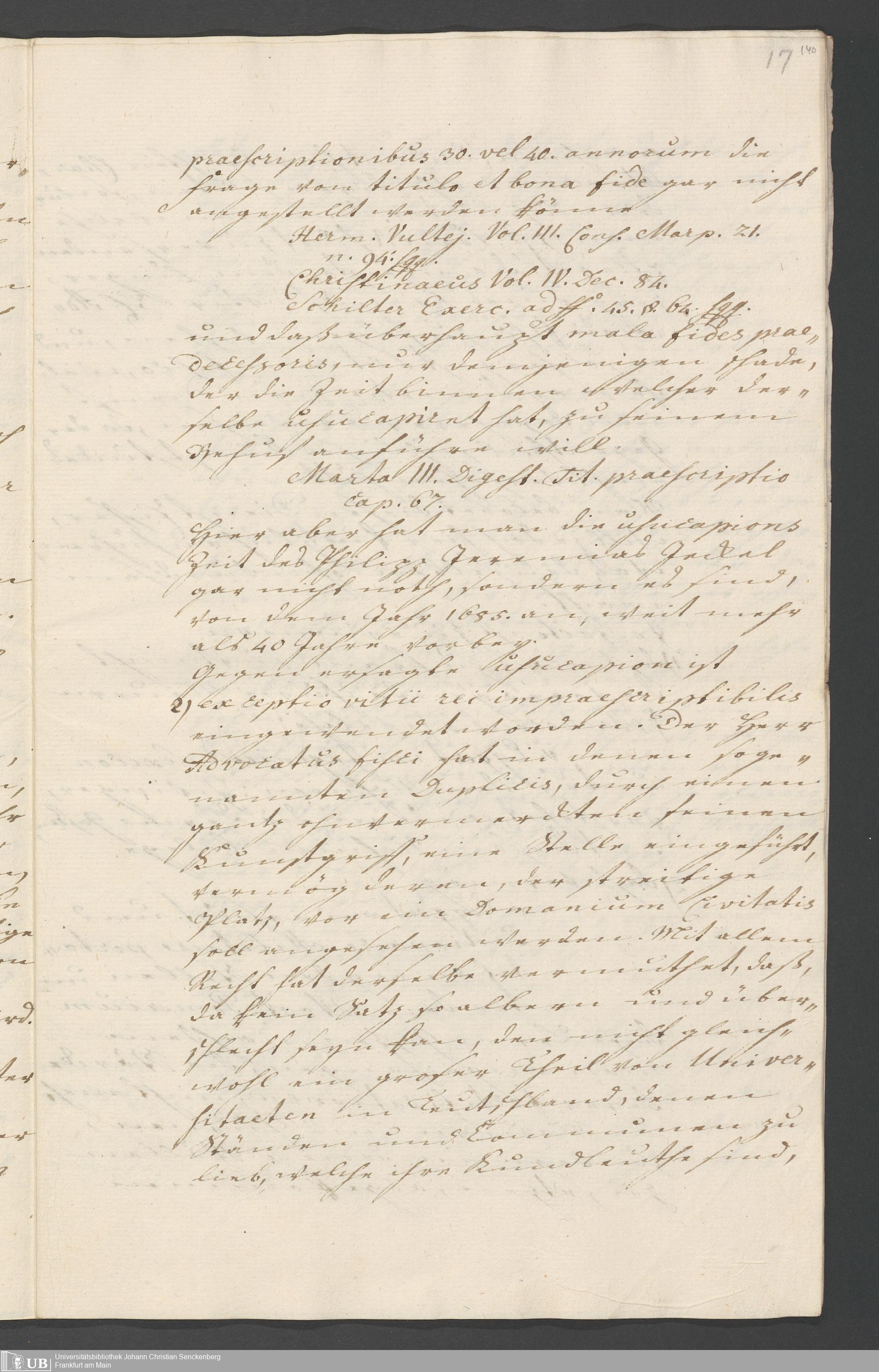 Na 31 Nachlass Johann Christian Senckenberg, 338 - Prozessakten über den Zwinger am de-Werderschen Haus