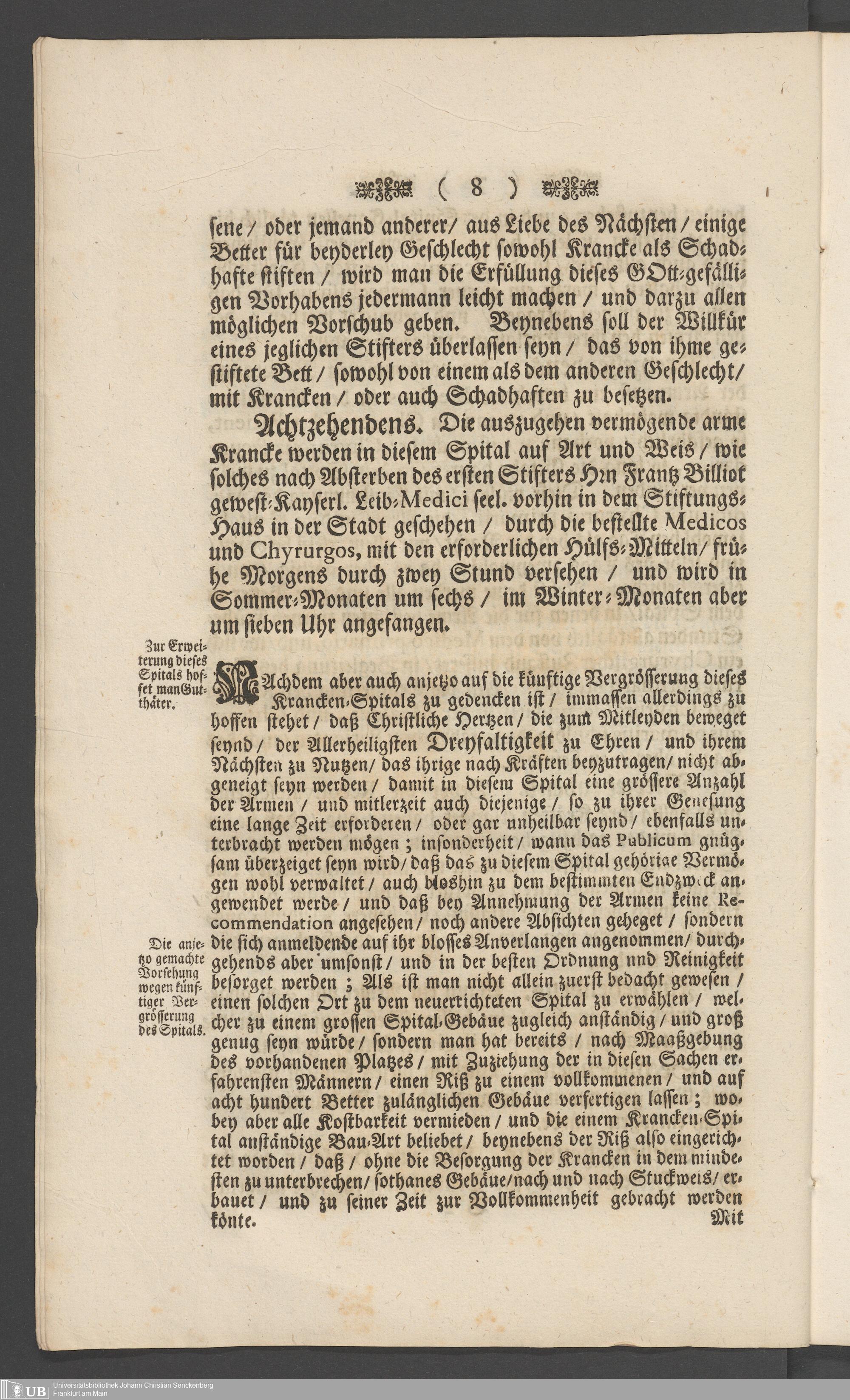 Na 31 Nachlass Johann Christian Senckenberg, 340 - Einrichtung auswärtiger Spitäler