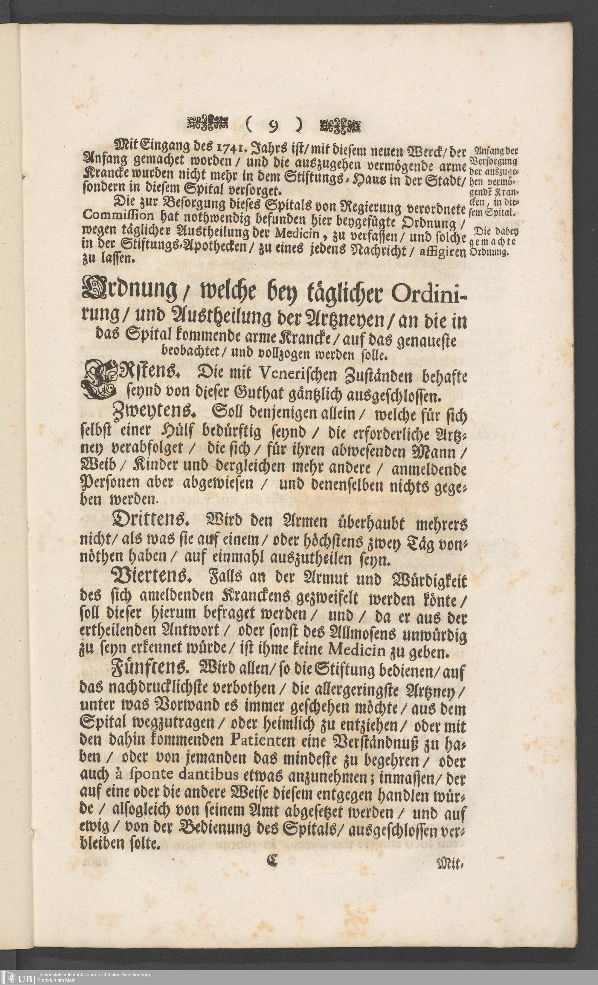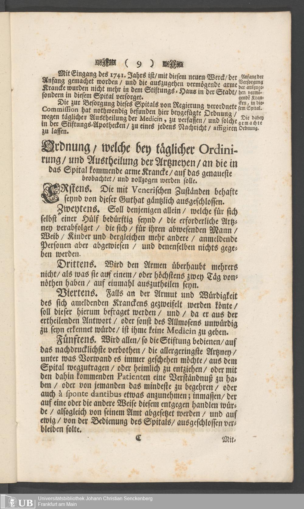 Na 31 Nachlass Johann Christian Senckenberg, 340 - Einrichtung auswärtiger Spitäler