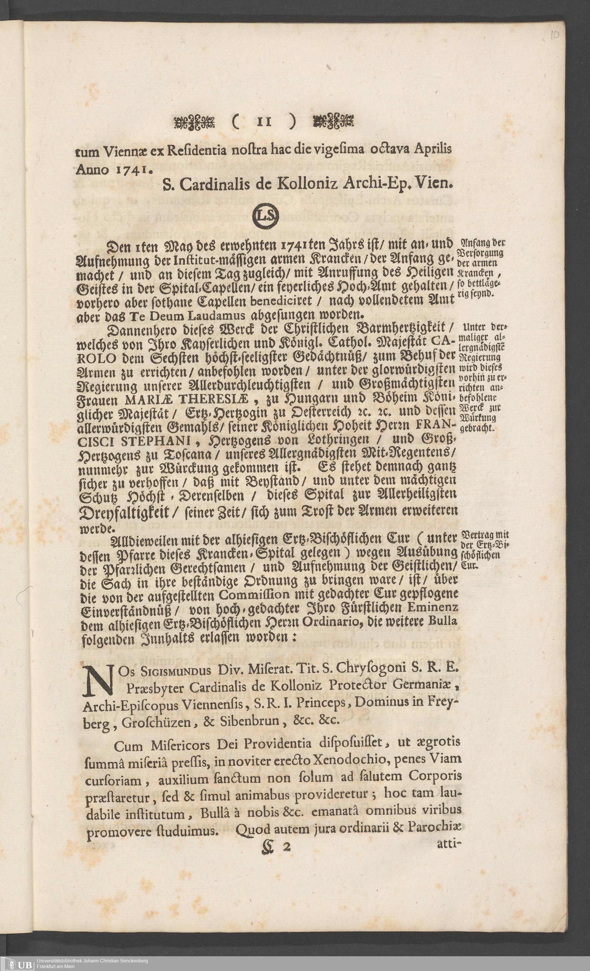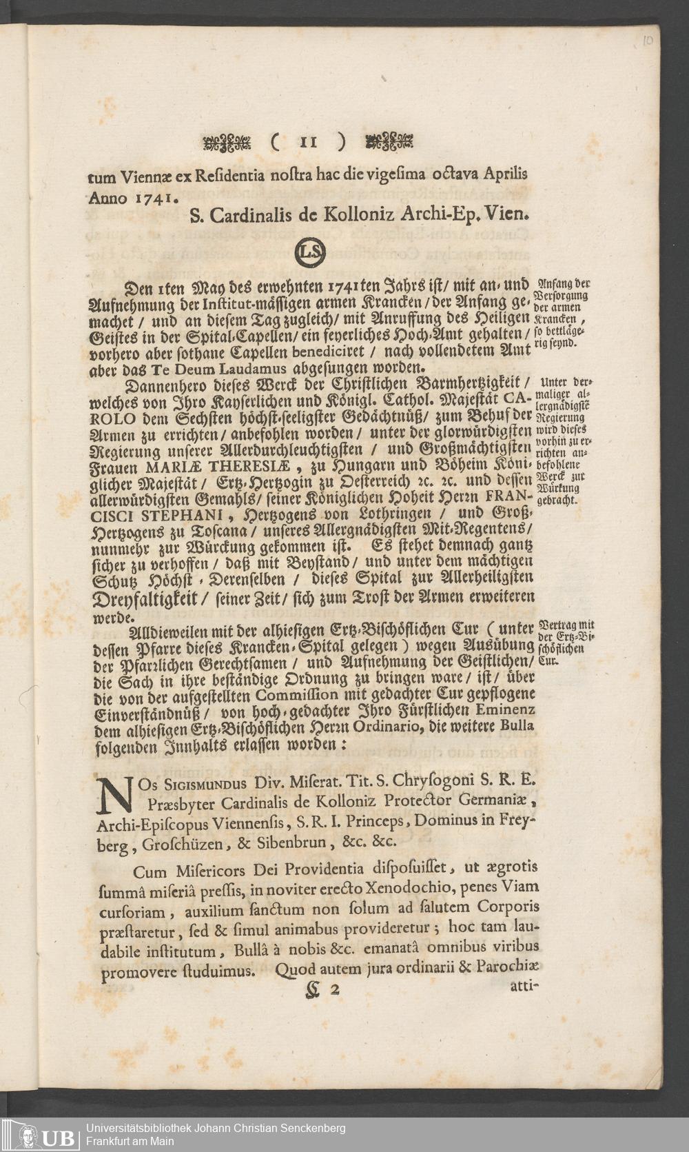 Na 31 Nachlass Johann Christian Senckenberg, 340 - Einrichtung auswärtiger Spitäler