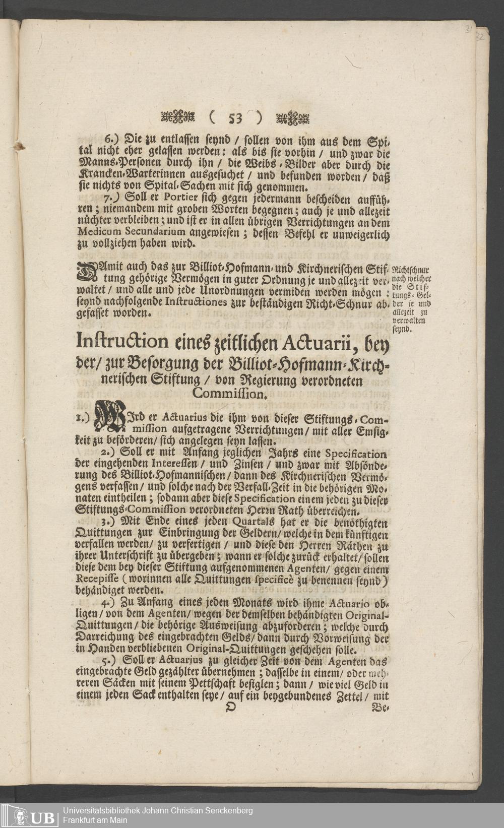 Na 31 Nachlass Johann Christian Senckenberg, 340 - Einrichtung auswärtiger Spitäler