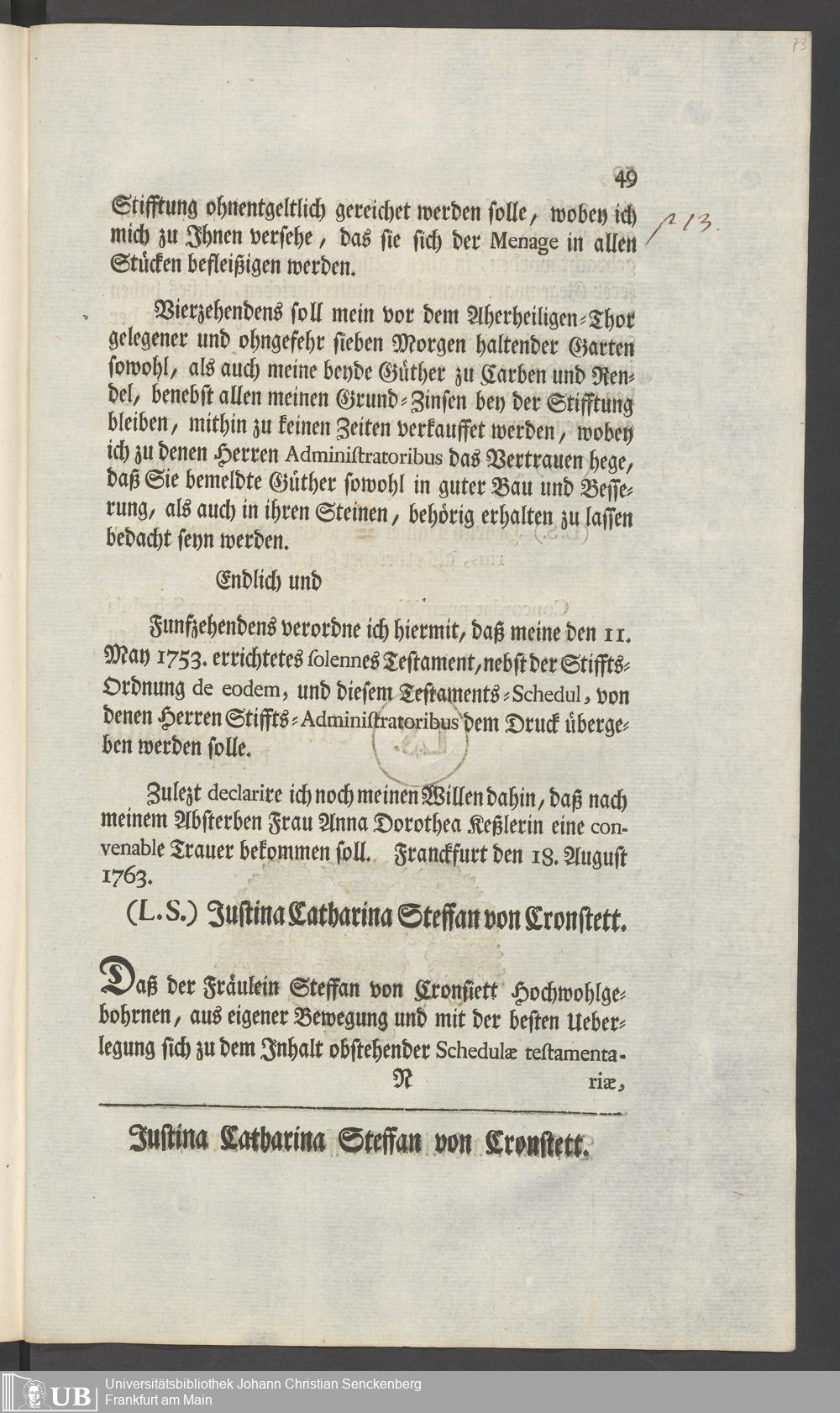 Nachlass Johann Christian Senckenberg