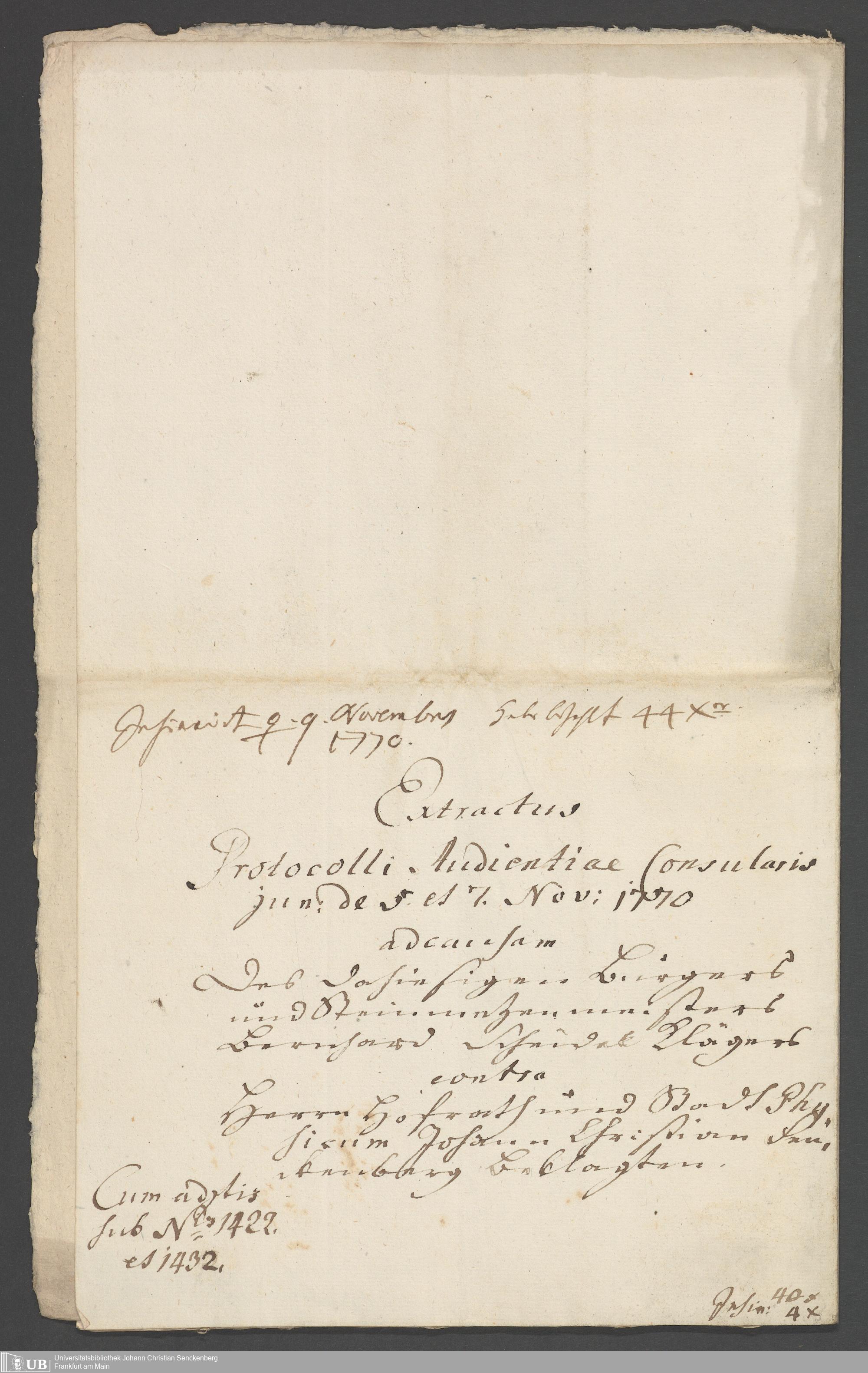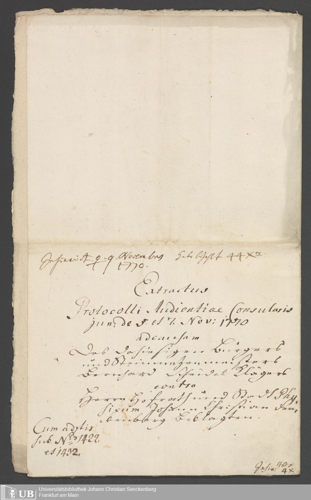 Na 31 Nachlass Johann Christian Senckenberg, 347 - Scheidelsche Prozessakte, Bau des Gewächshauses und der Anatomie