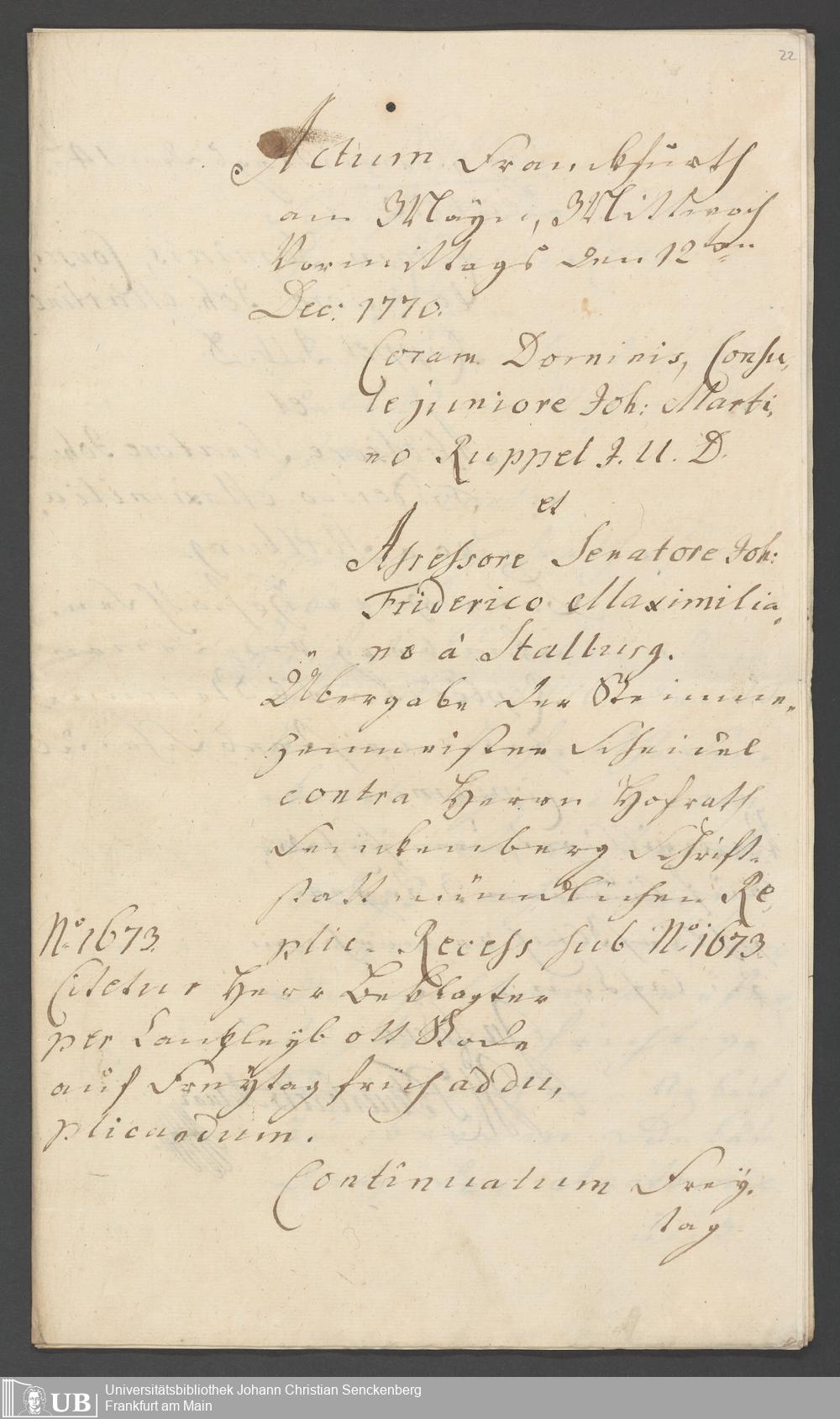 Na 31 Nachlass Johann Christian Senckenberg, 347 - Scheidelsche Prozessakte, Bau des Gewächshauses und der Anatomie