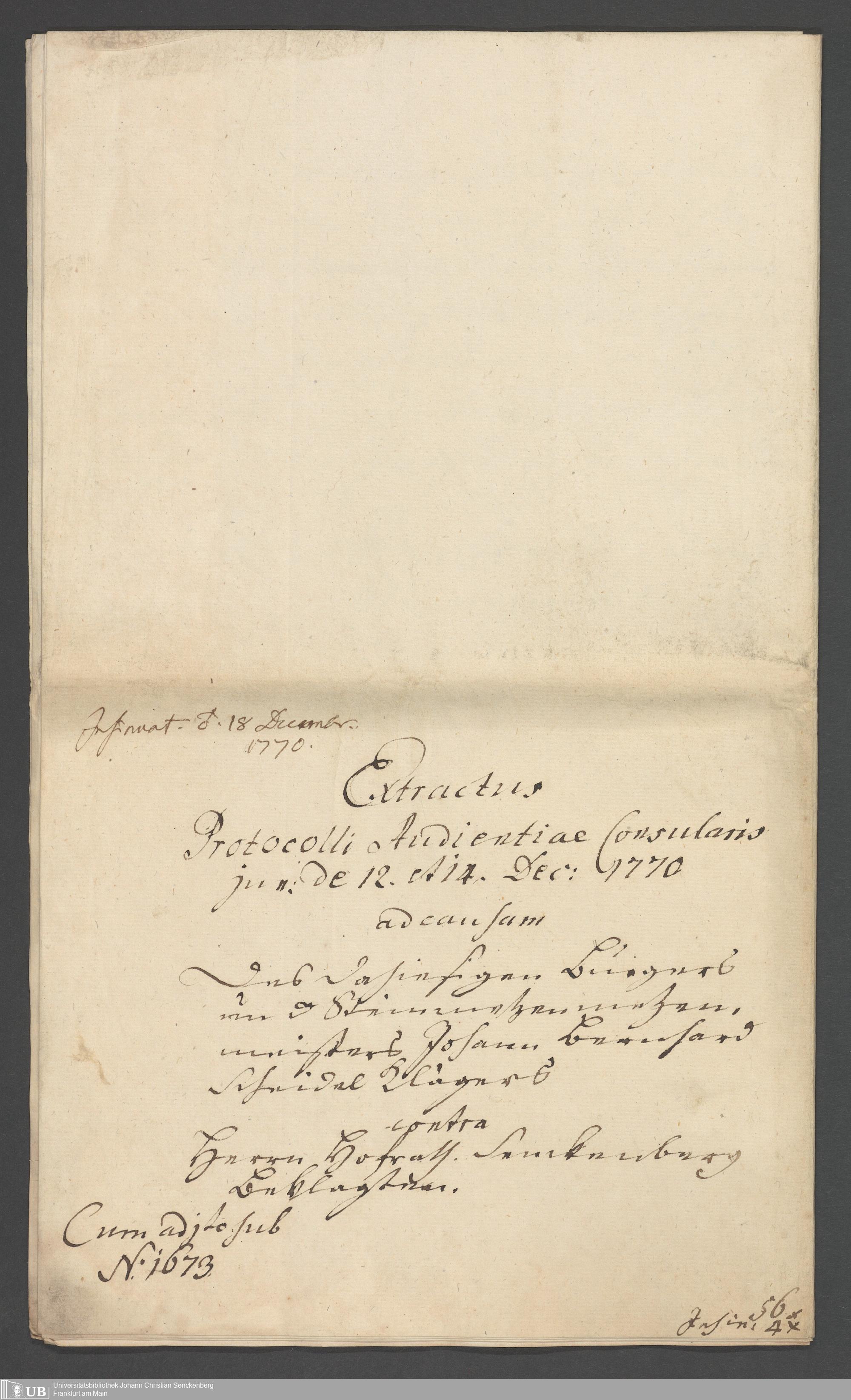 Na 31 Nachlass Johann Christian Senckenberg, 347 - Scheidelsche Prozessakte, Bau des Gewächshauses und der Anatomie