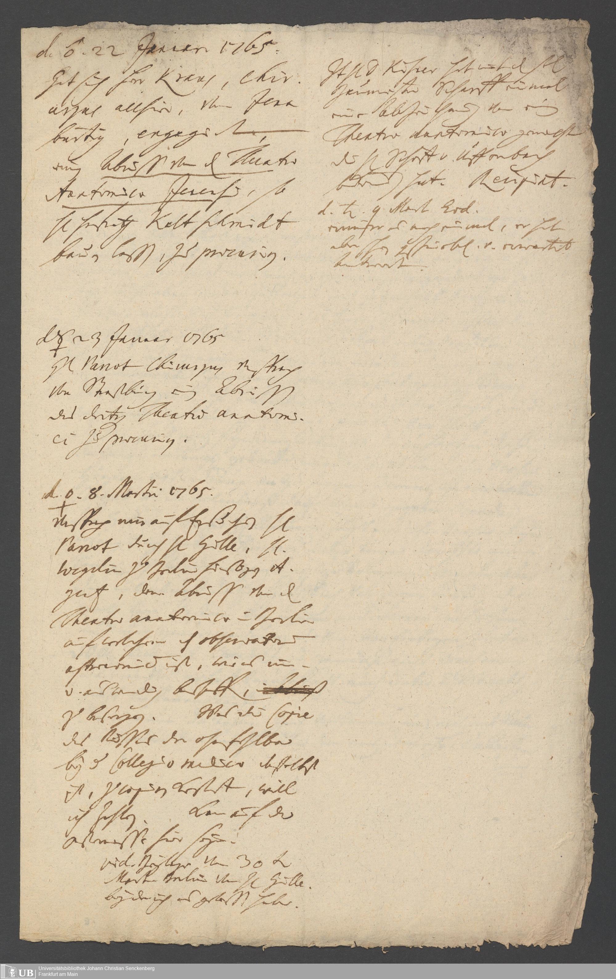Na 31 Nachlass Johann Christian Senckenberg, 348 - Schriftstücke über die Errichtung der Anatomie