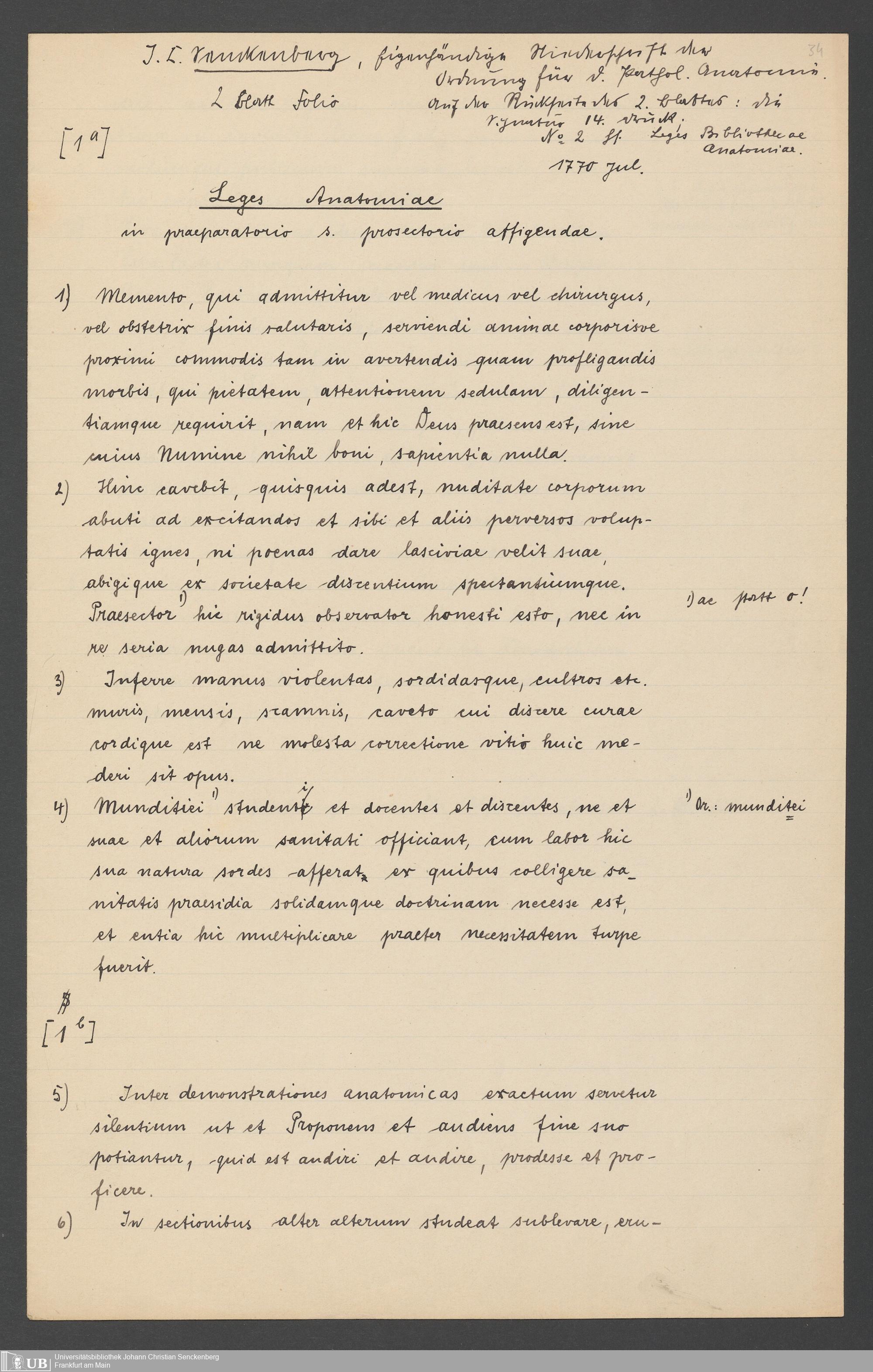 Na 31 Nachlass Johann Christian Senckenberg, 348 - Schriftstücke über die Errichtung der Anatomie