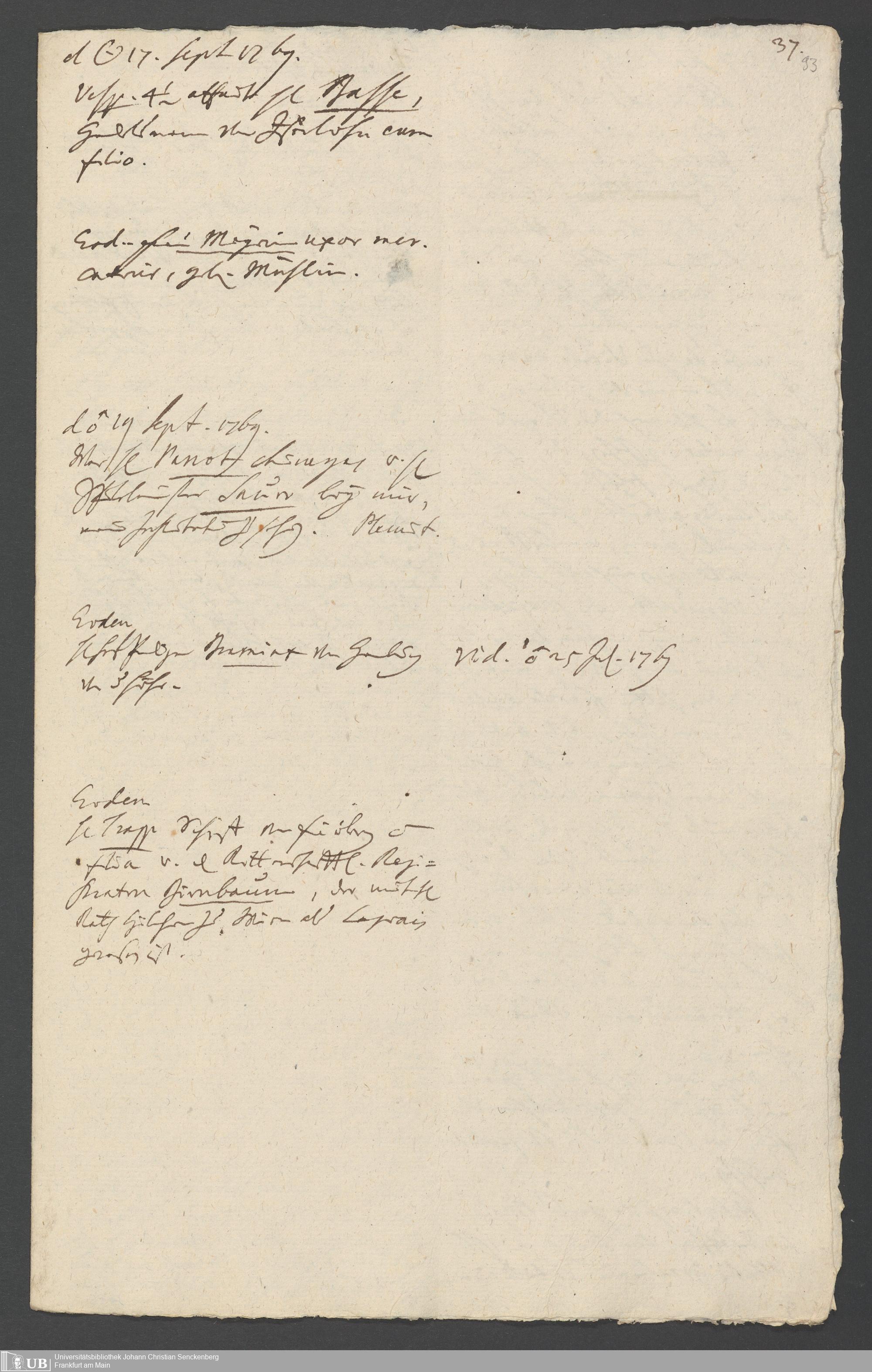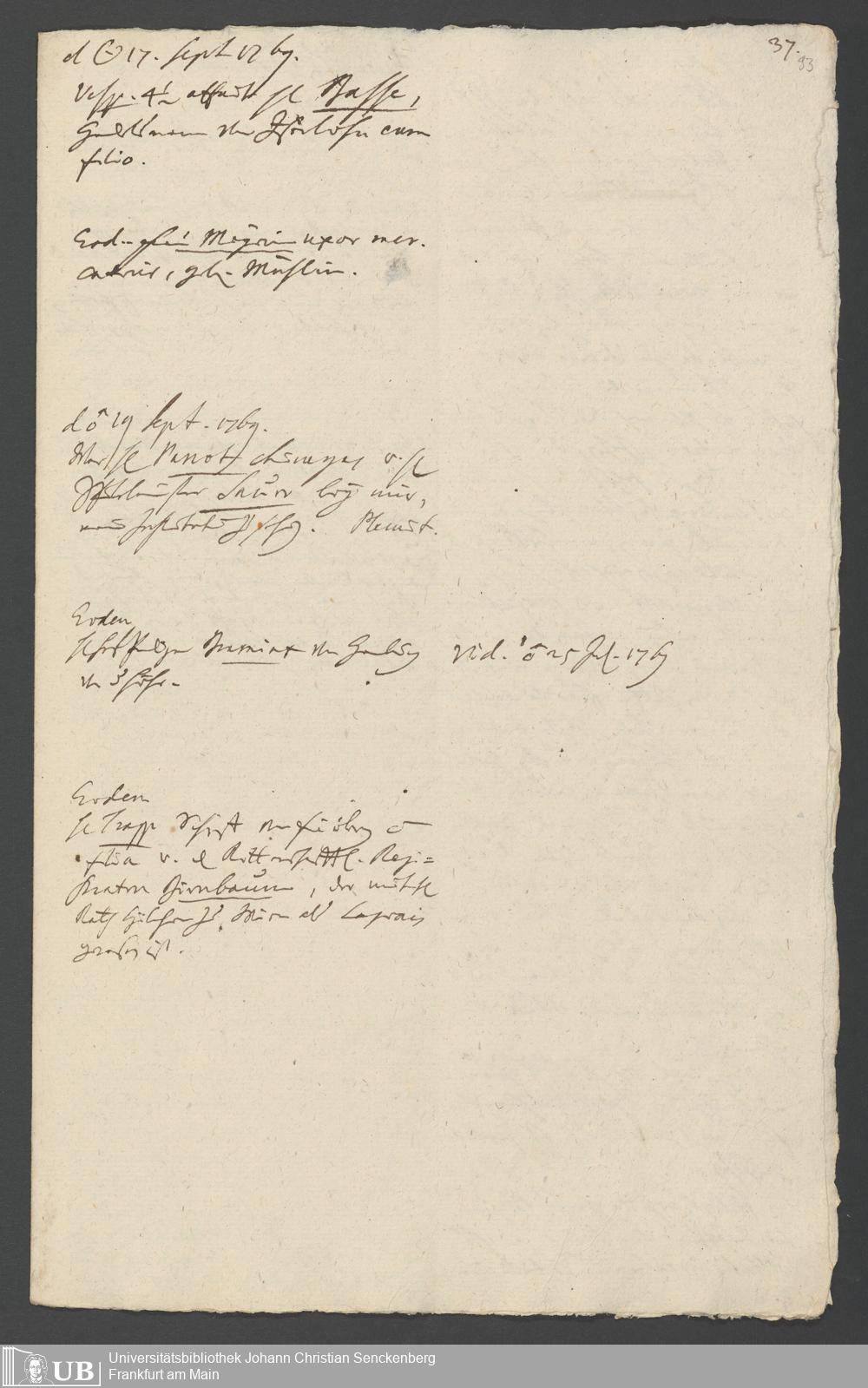Na 31 Nachlass Johann Christian Senckenberg, 349 - Aufzeichnungen über die Besucher der Stiftungsanlagen