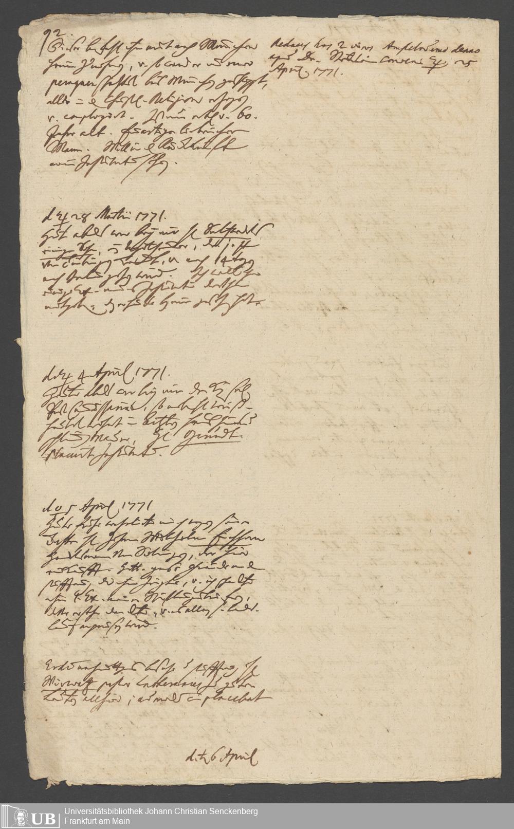 Na 31 Nachlass Johann Christian Senckenberg, 349 - Aufzeichnungen über die Besucher der Stiftungsanlagen