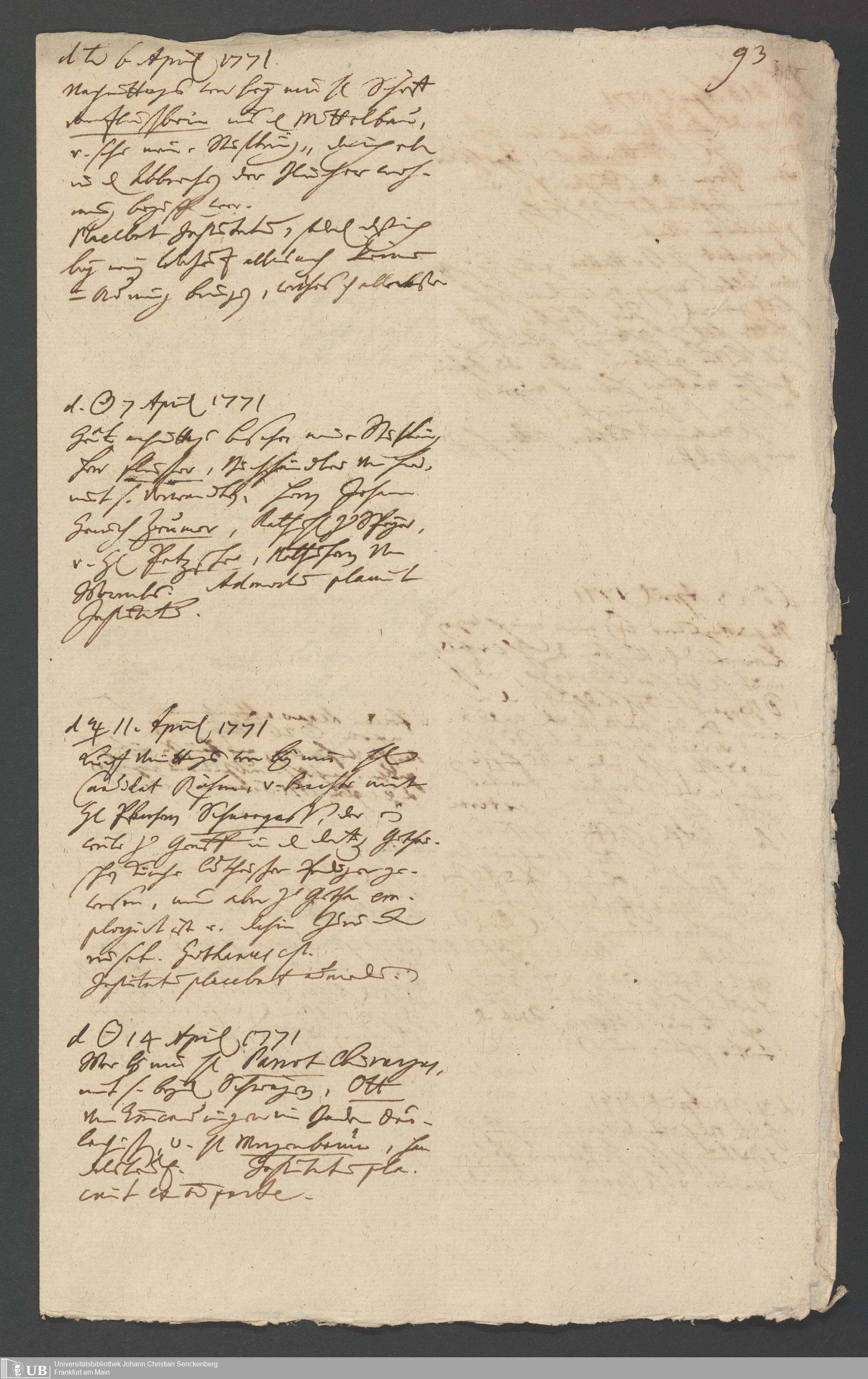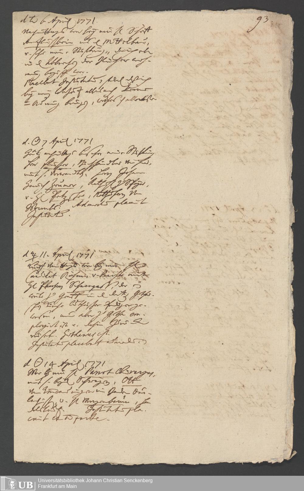 Na 31 Nachlass Johann Christian Senckenberg, 349 - Aufzeichnungen über die Besucher der Stiftungsanlagen