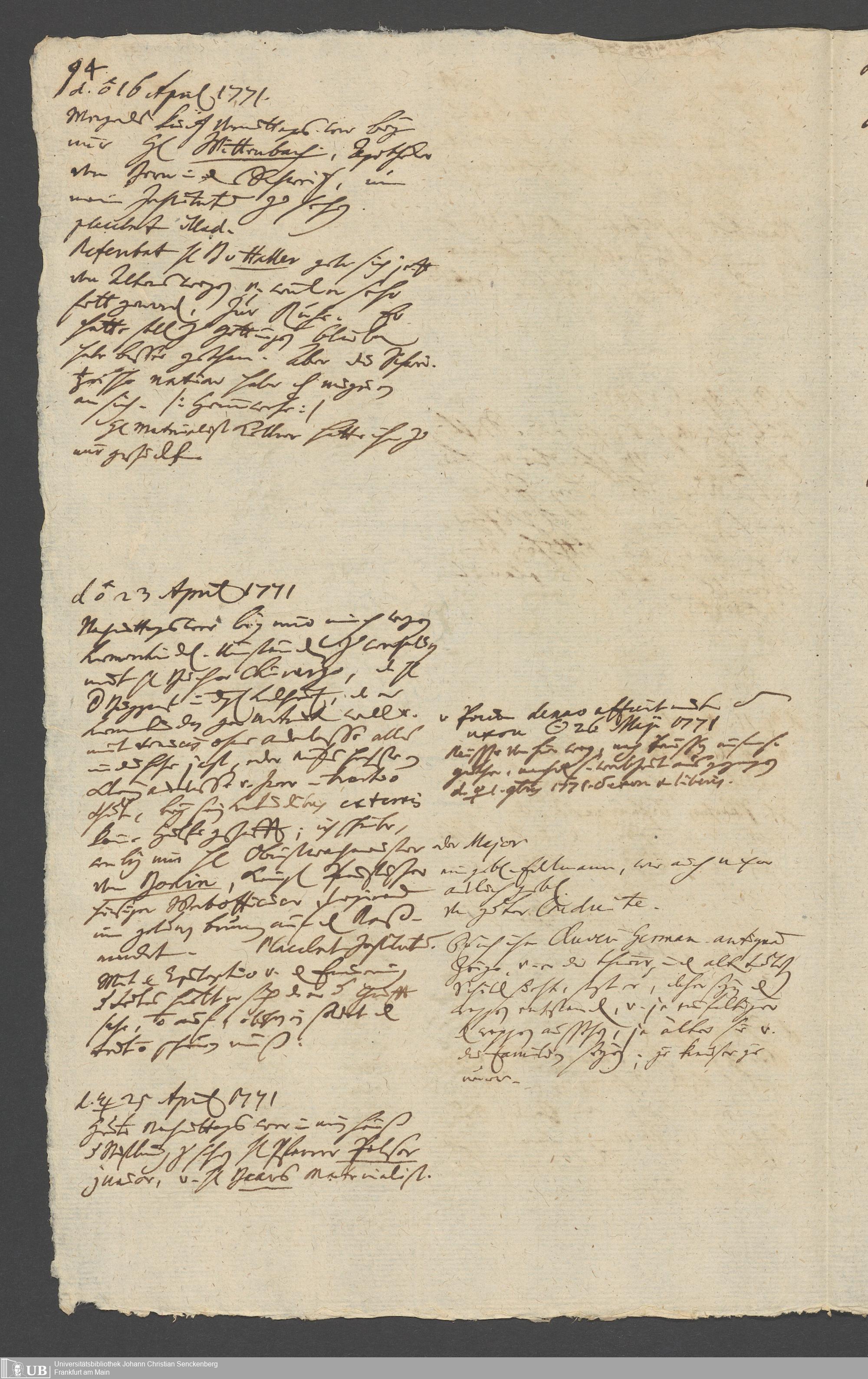 Na 31 Nachlass Johann Christian Senckenberg, 349 - Aufzeichnungen über die Besucher der Stiftungsanlagen