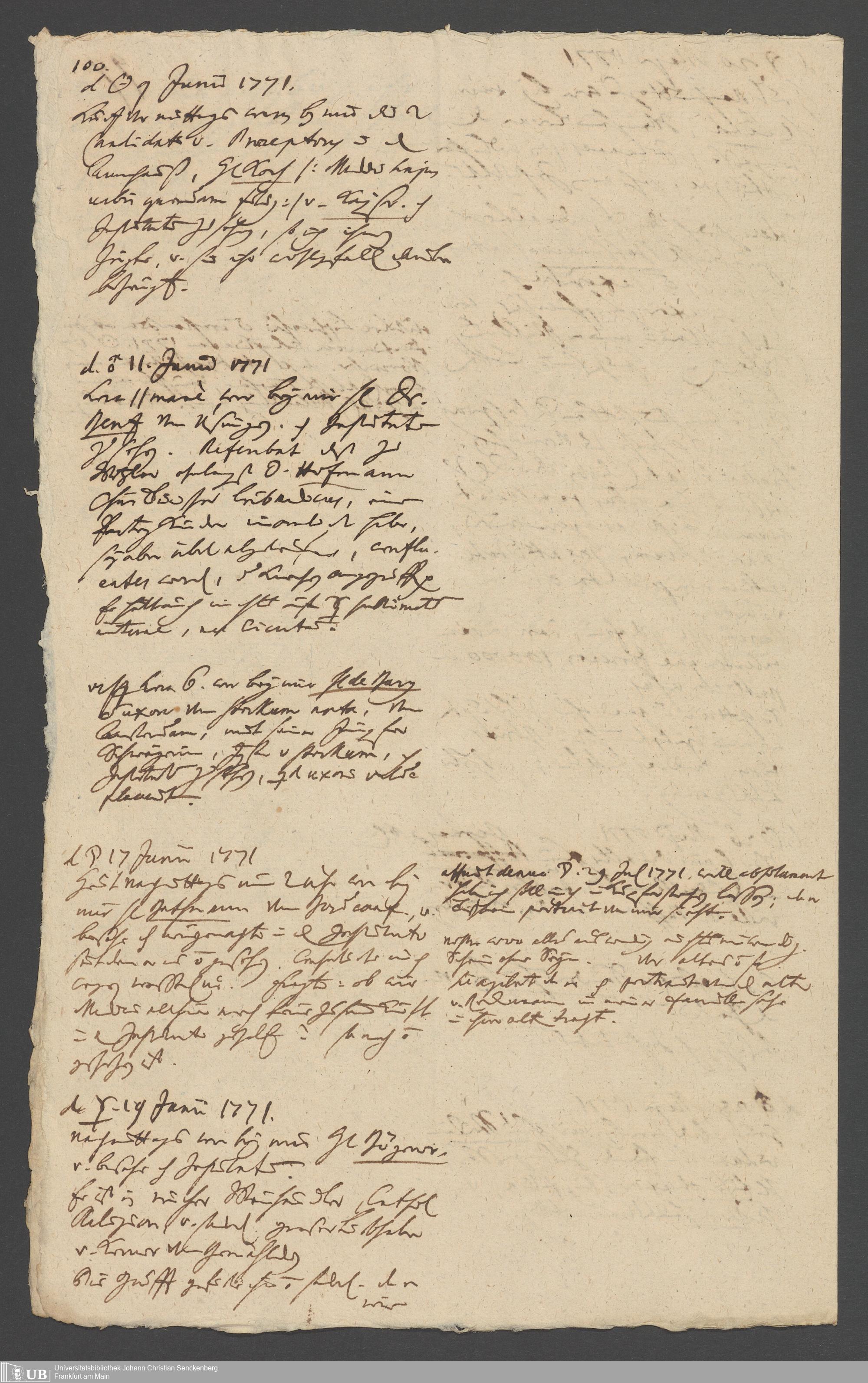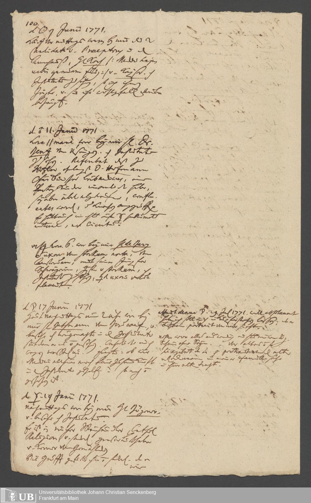 Na 31 Nachlass Johann Christian Senckenberg, 349 - Aufzeichnungen über die Besucher der Stiftungsanlagen