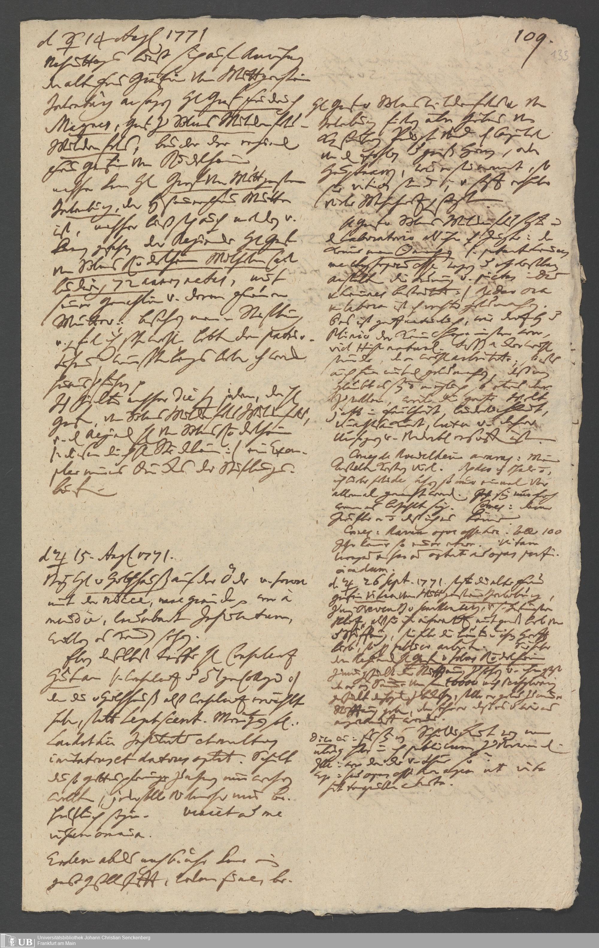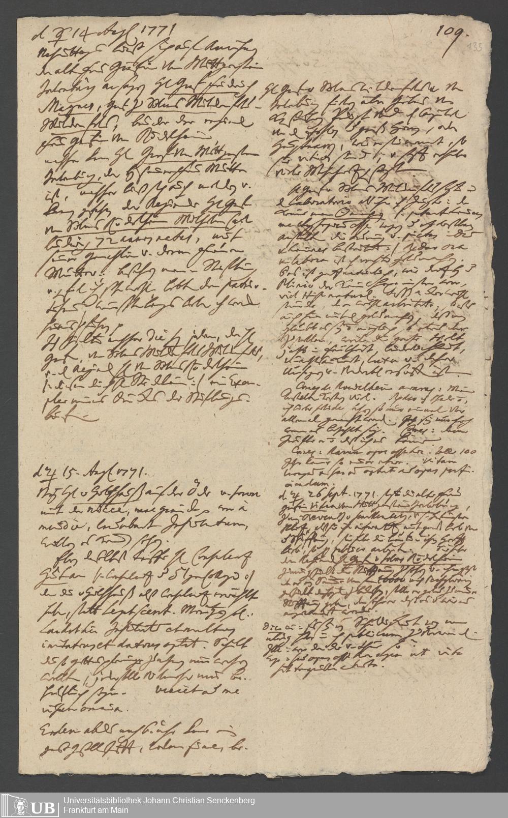 Na 31 Nachlass Johann Christian Senckenberg, 349 - Aufzeichnungen über die Besucher der Stiftungsanlagen