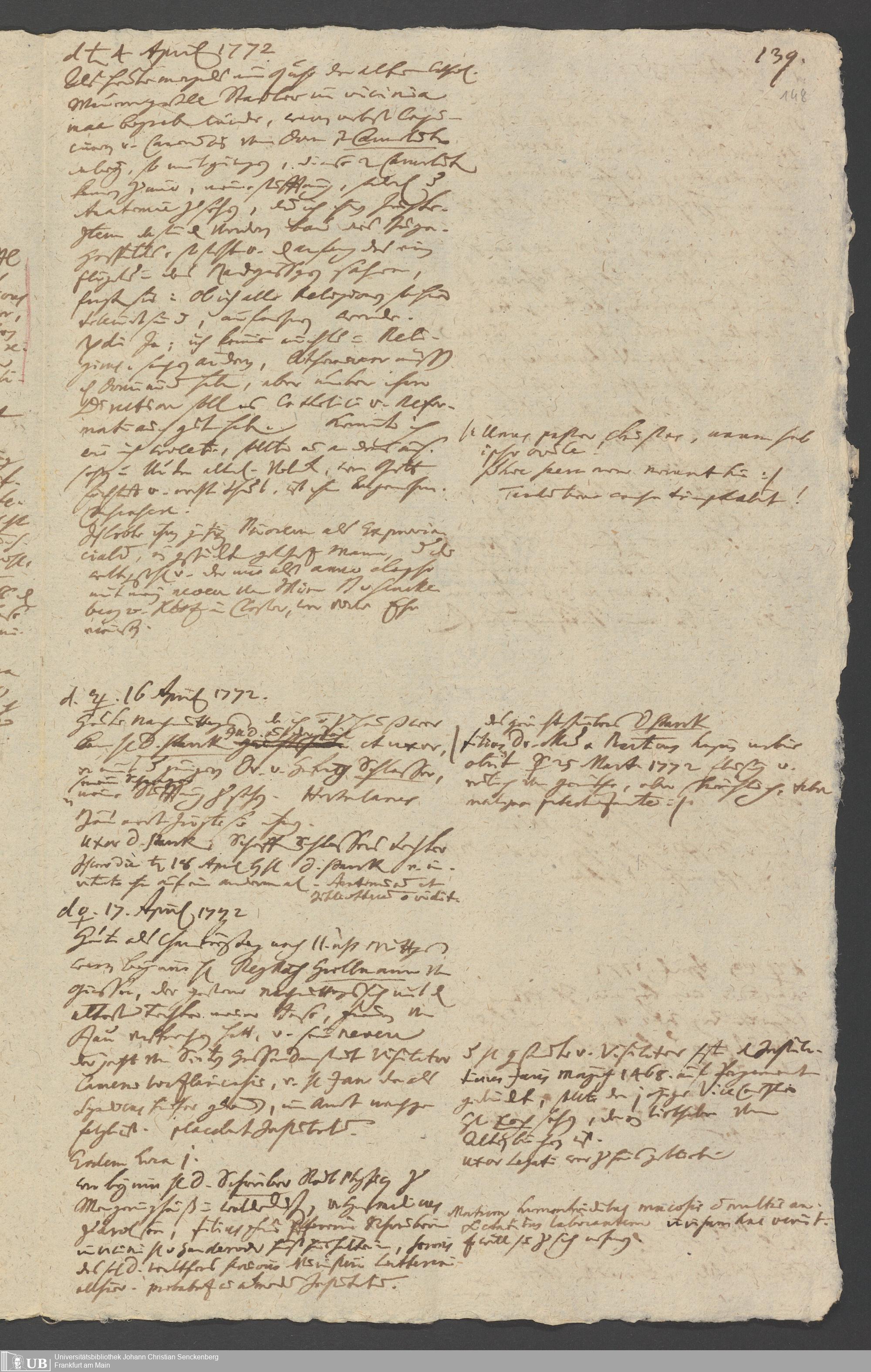 Na 31 Nachlass Johann Christian Senckenberg, 349 - Aufzeichnungen über die Besucher der Stiftungsanlagen
