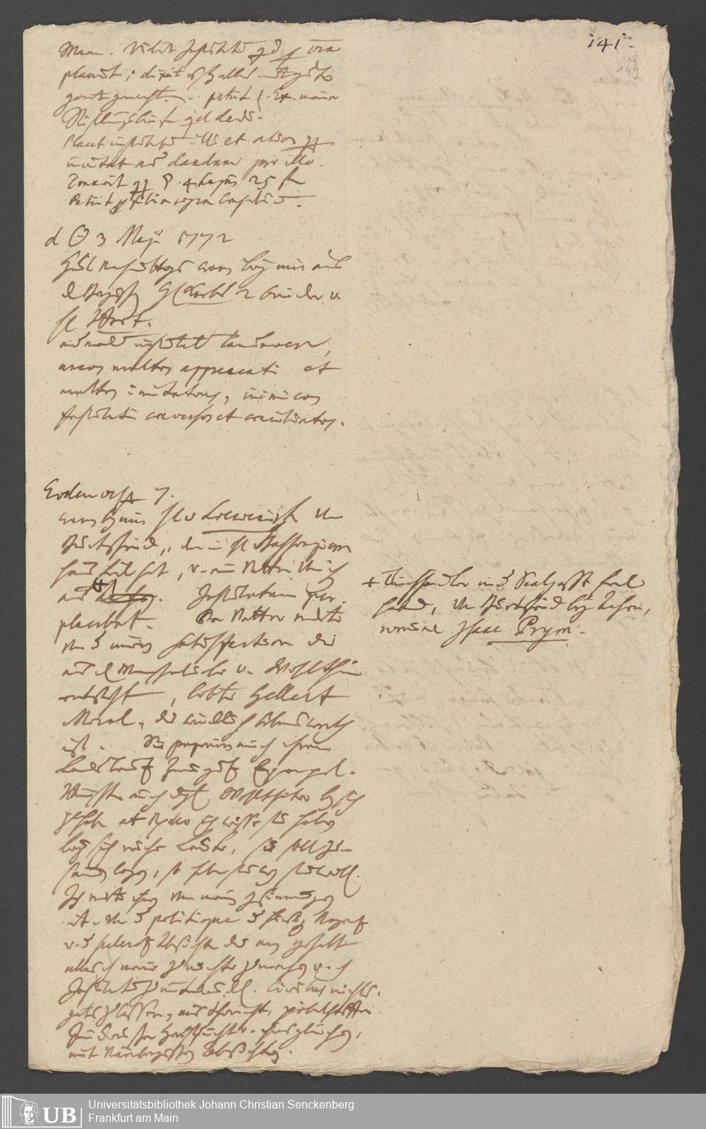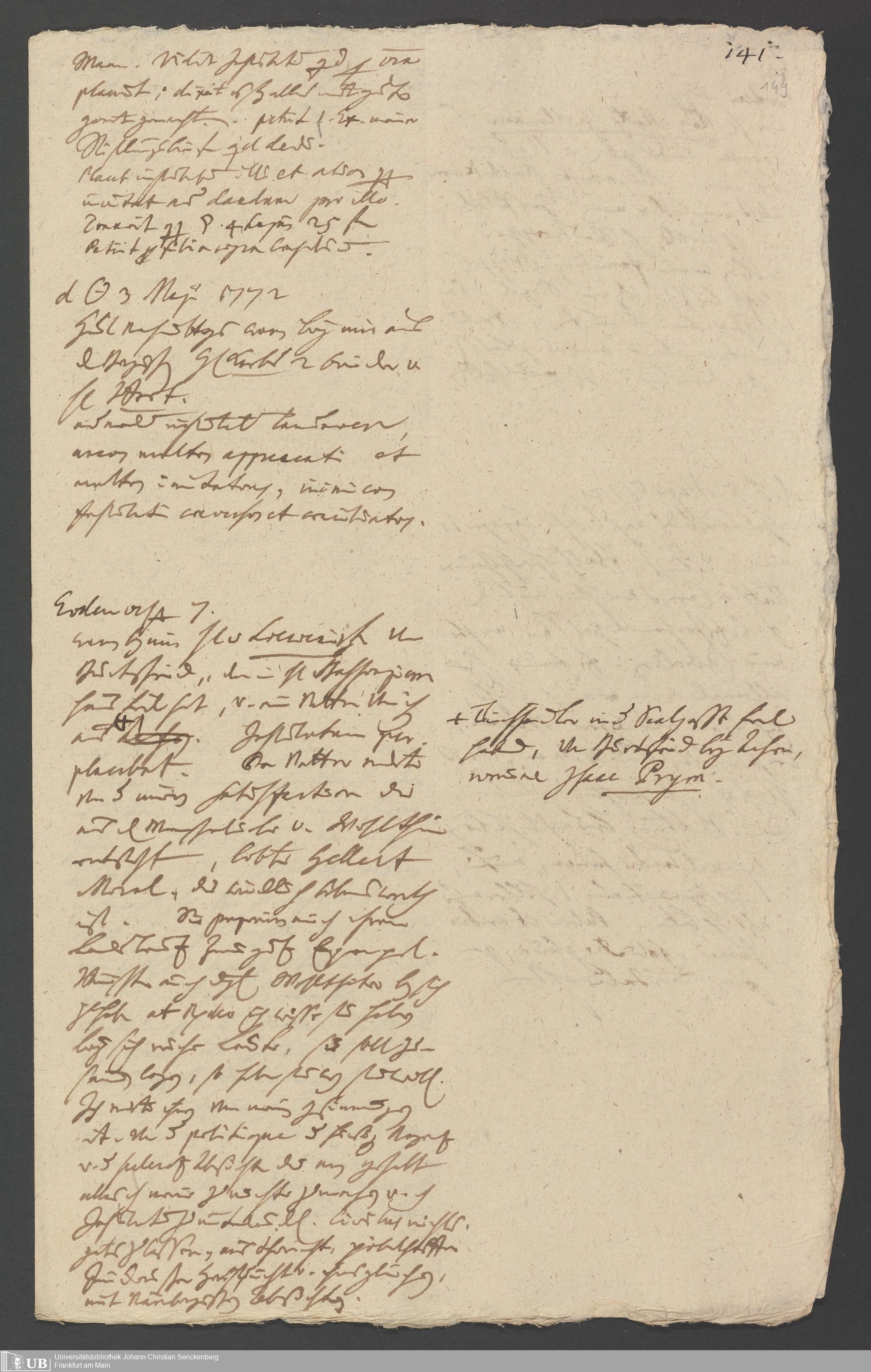 Na 31 Nachlass Johann Christian Senckenberg, 349 - Aufzeichnungen über die Besucher der Stiftungsanlagen
