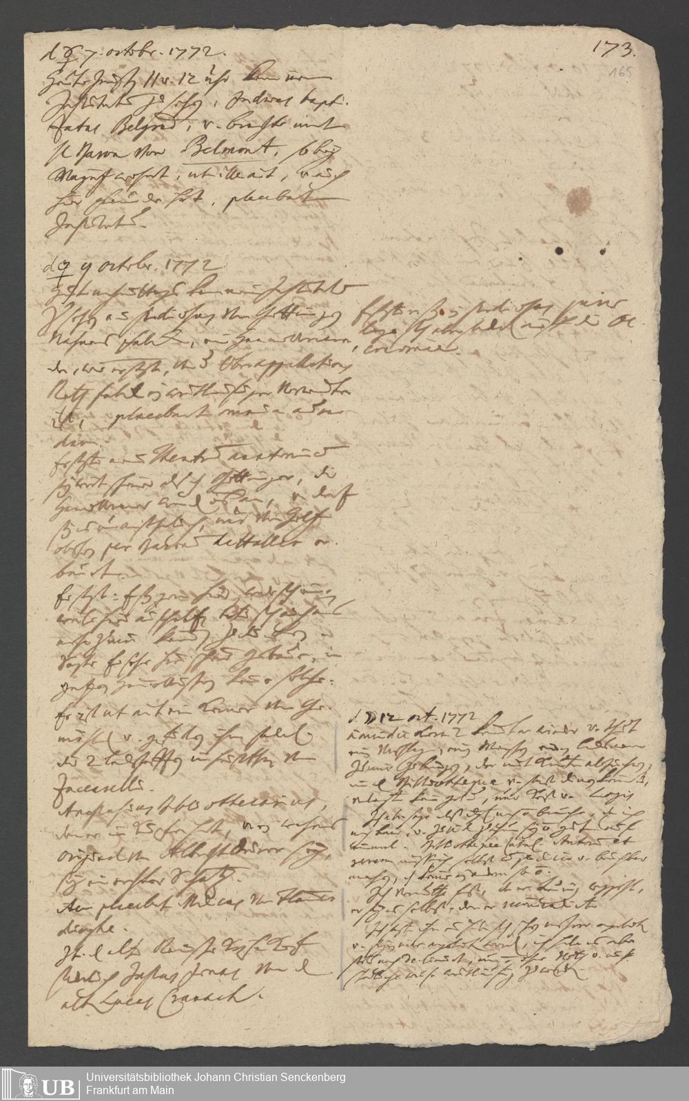 Na 31 Nachlass Johann Christian Senckenberg, 349 - Aufzeichnungen über die Besucher der Stiftungsanlagen