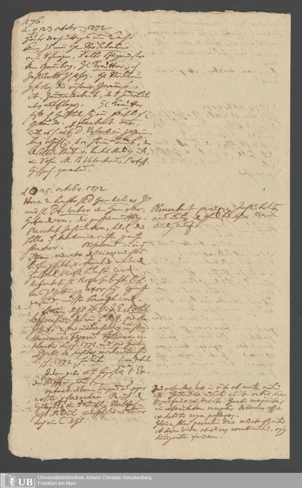Na 31 Nachlass Johann Christian Senckenberg, 349 - Aufzeichnungen über die Besucher der Stiftungsanlagen