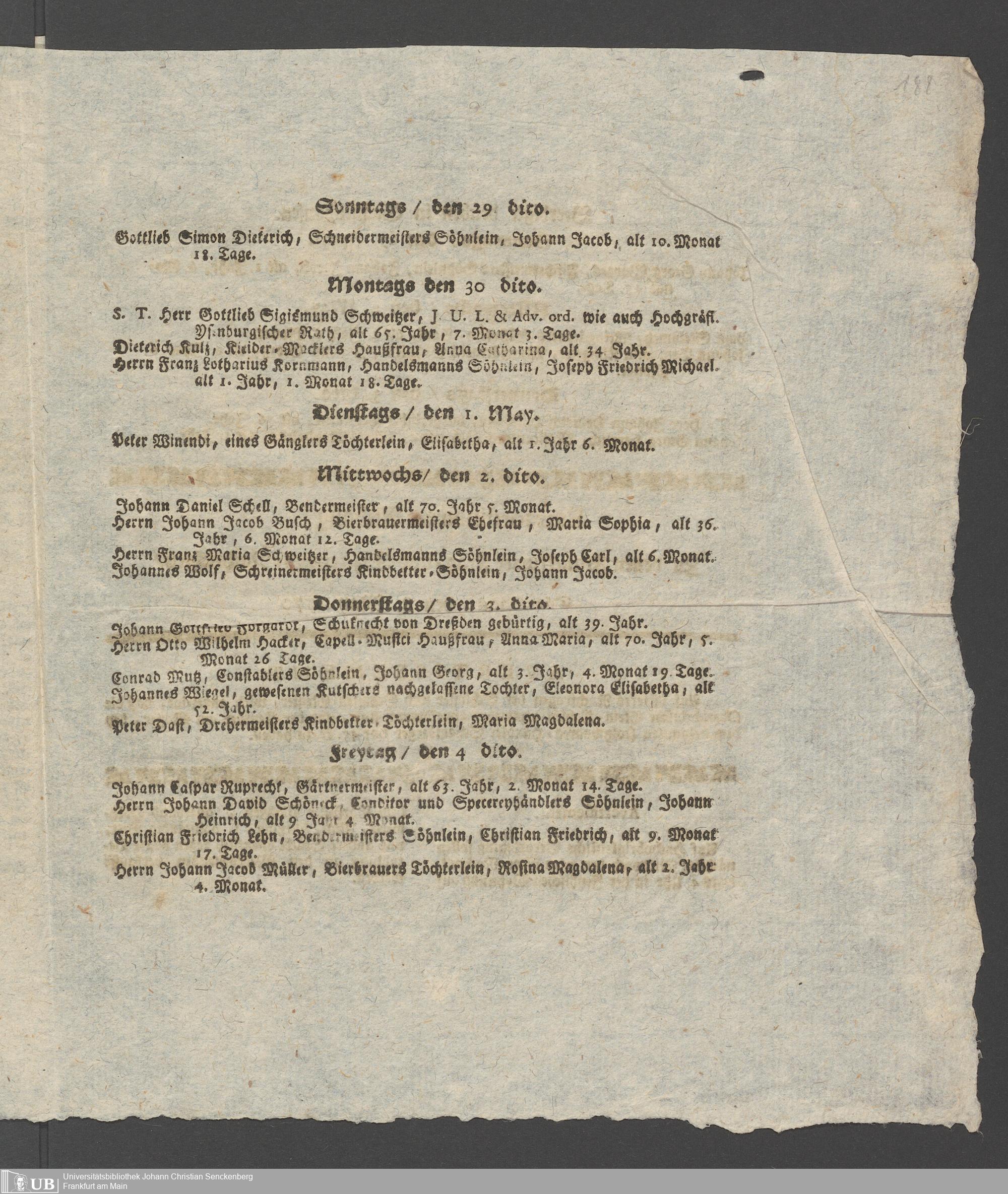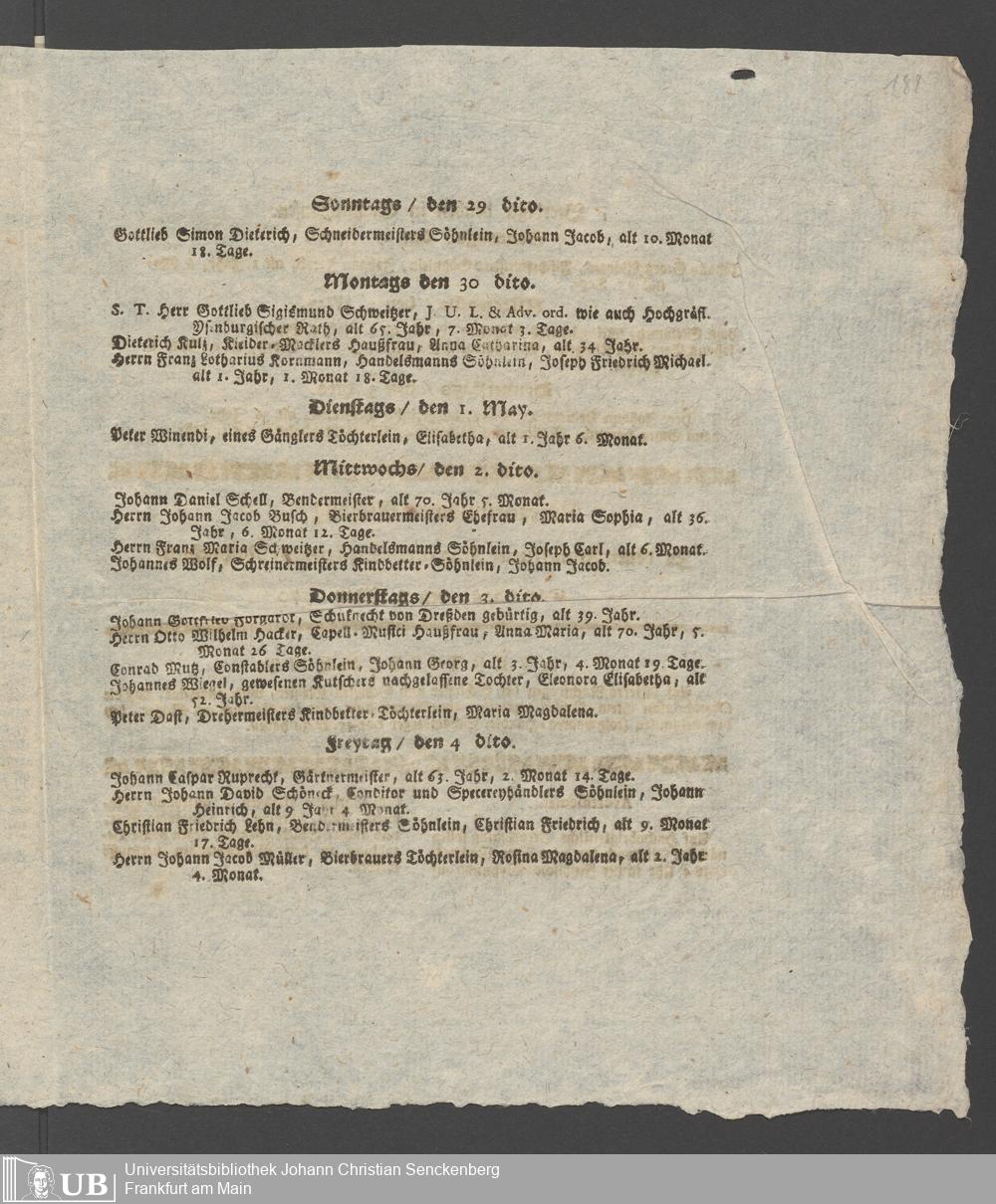 Na 31 Nachlass Johann Christian Senckenberg, 349 - Aufzeichnungen über die Besucher der Stiftungsanlagen