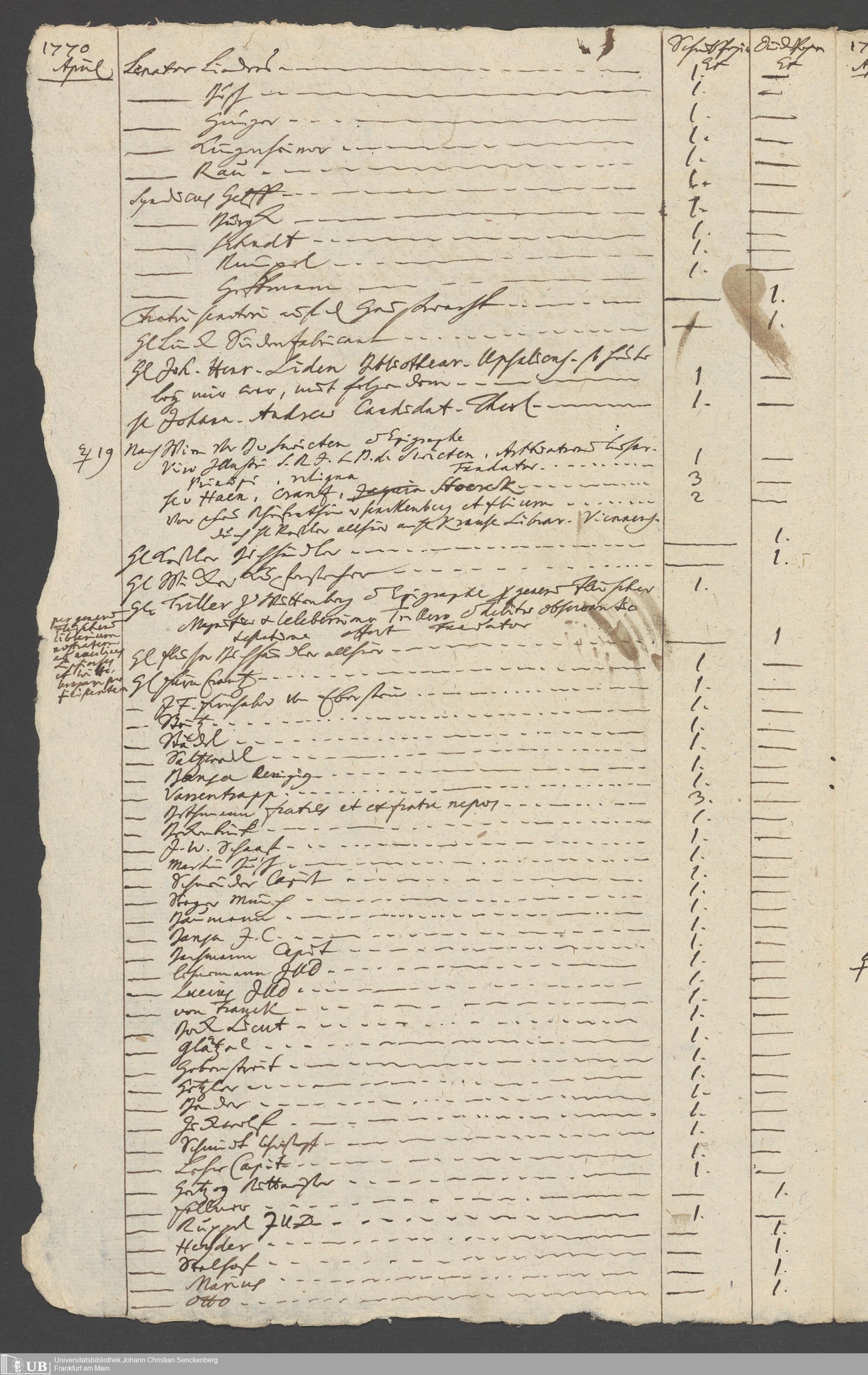 Na 31 Nachlass Johann Christian Senckenberg, 349 - Aufzeichnungen über die Besucher der Stiftungsanlagen