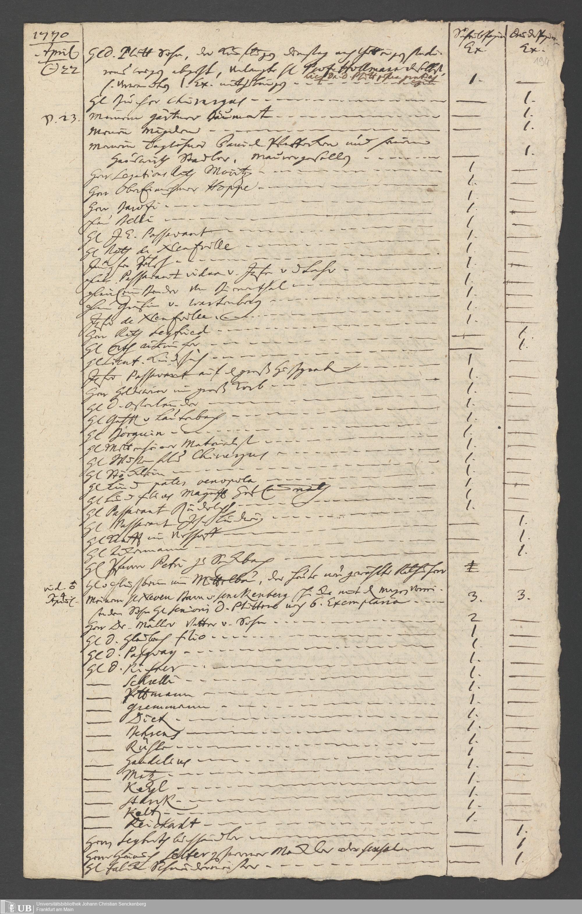 Na 31 Nachlass Johann Christian Senckenberg, 349 - Aufzeichnungen über die Besucher der Stiftungsanlagen