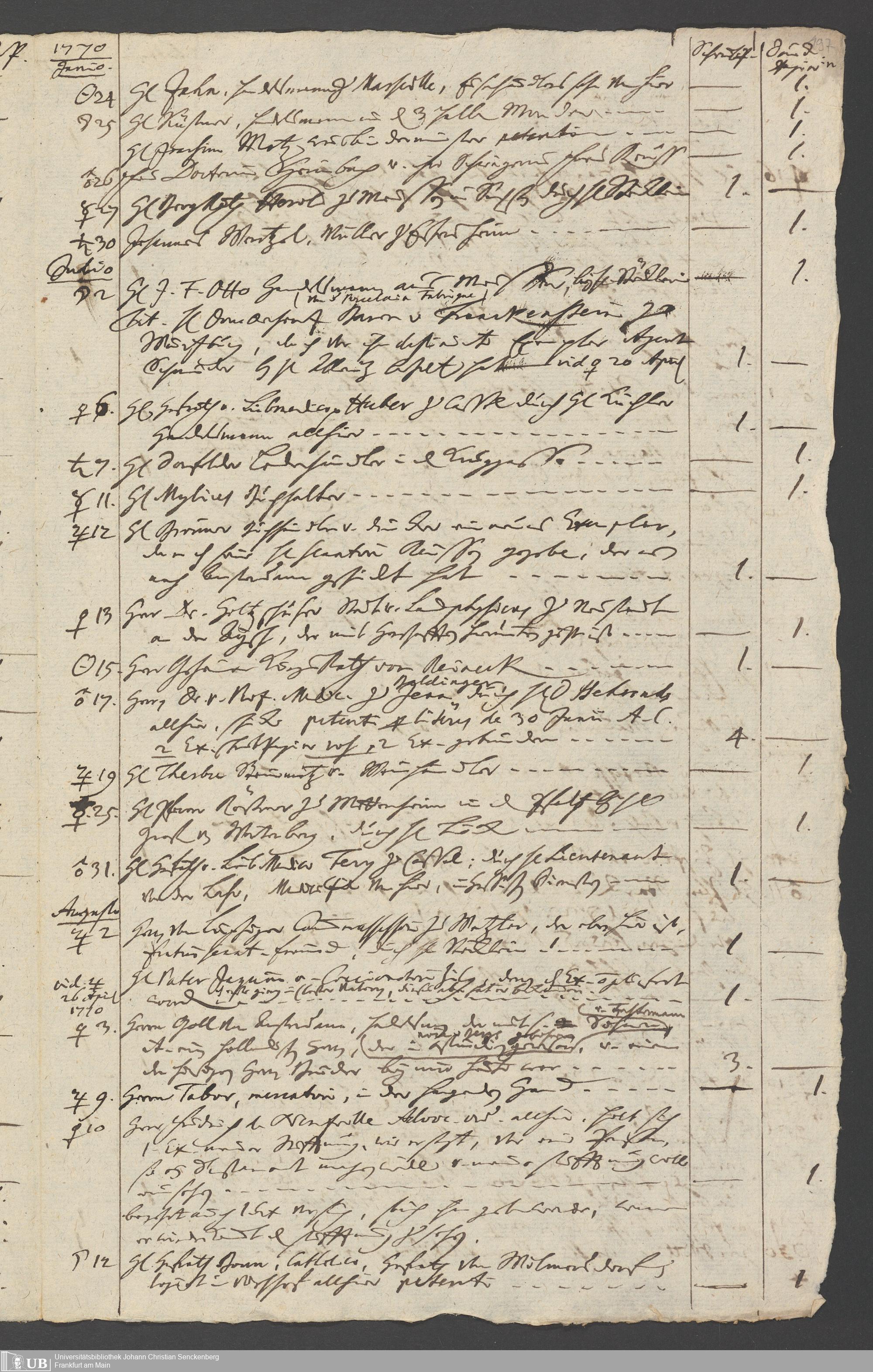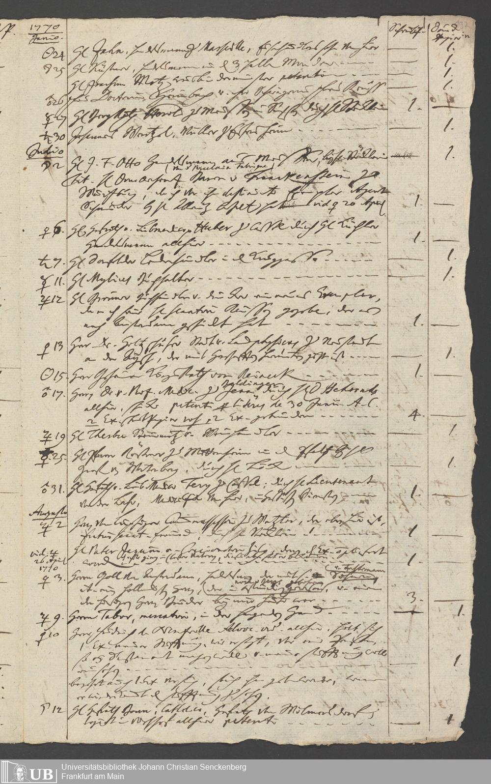 Na 31 Nachlass Johann Christian Senckenberg, 349 - Aufzeichnungen über die Besucher der Stiftungsanlagen