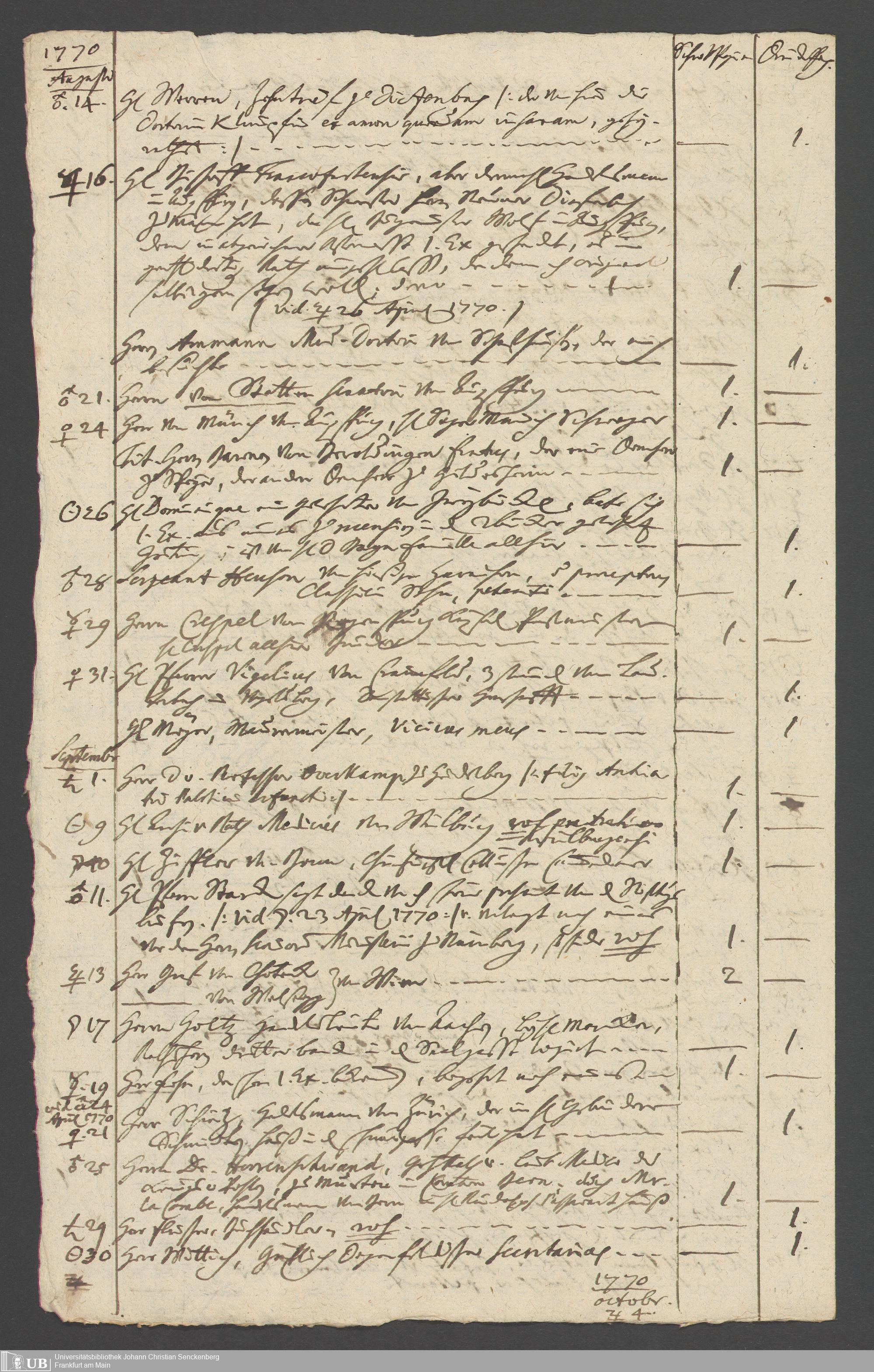 Na 31 Nachlass Johann Christian Senckenberg, 349 - Aufzeichnungen über die Besucher der Stiftungsanlagen