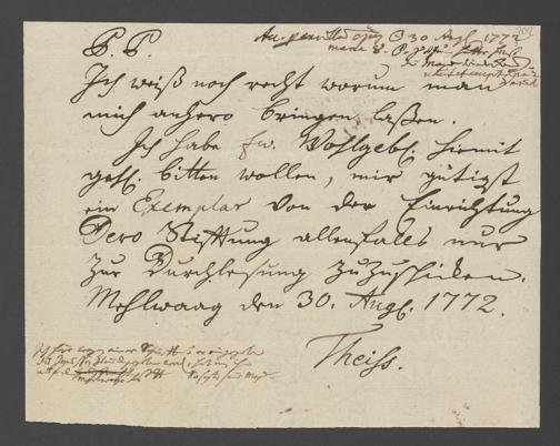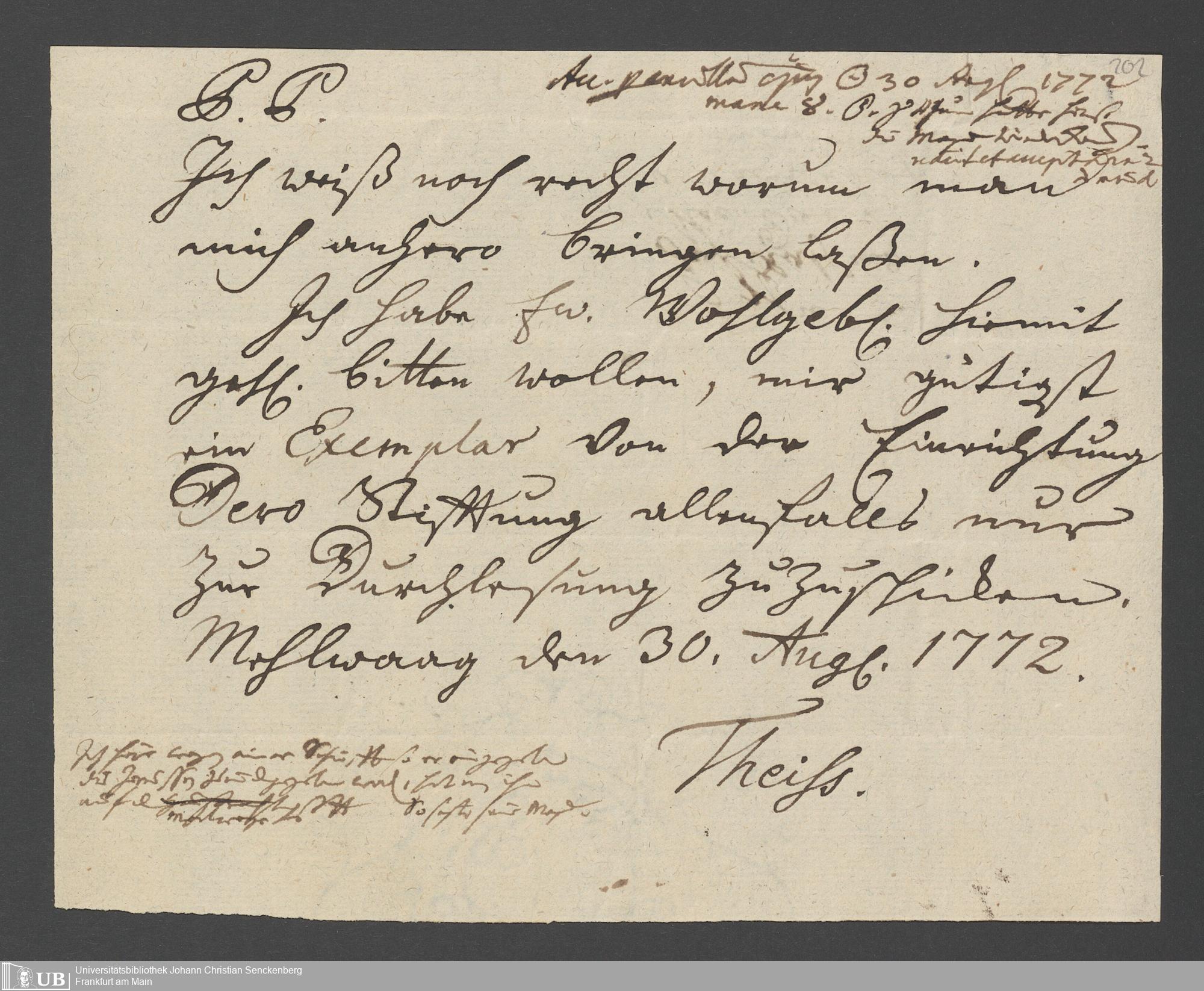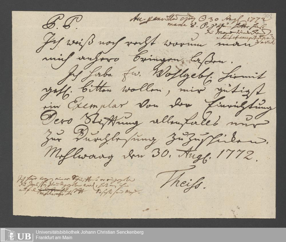 Na 31 Nachlass Johann Christian Senckenberg, 349 - Aufzeichnungen über die Besucher der Stiftungsanlagen