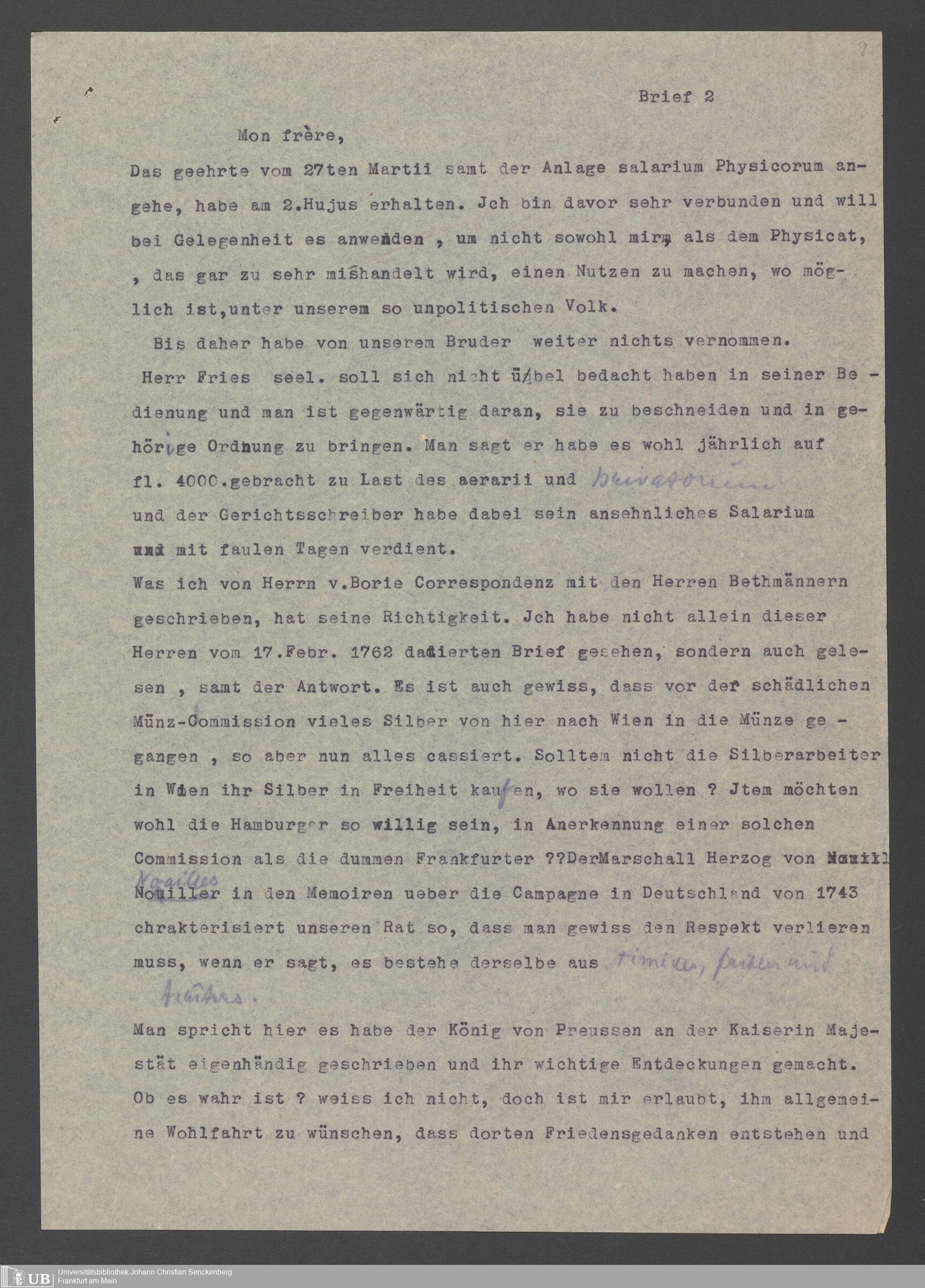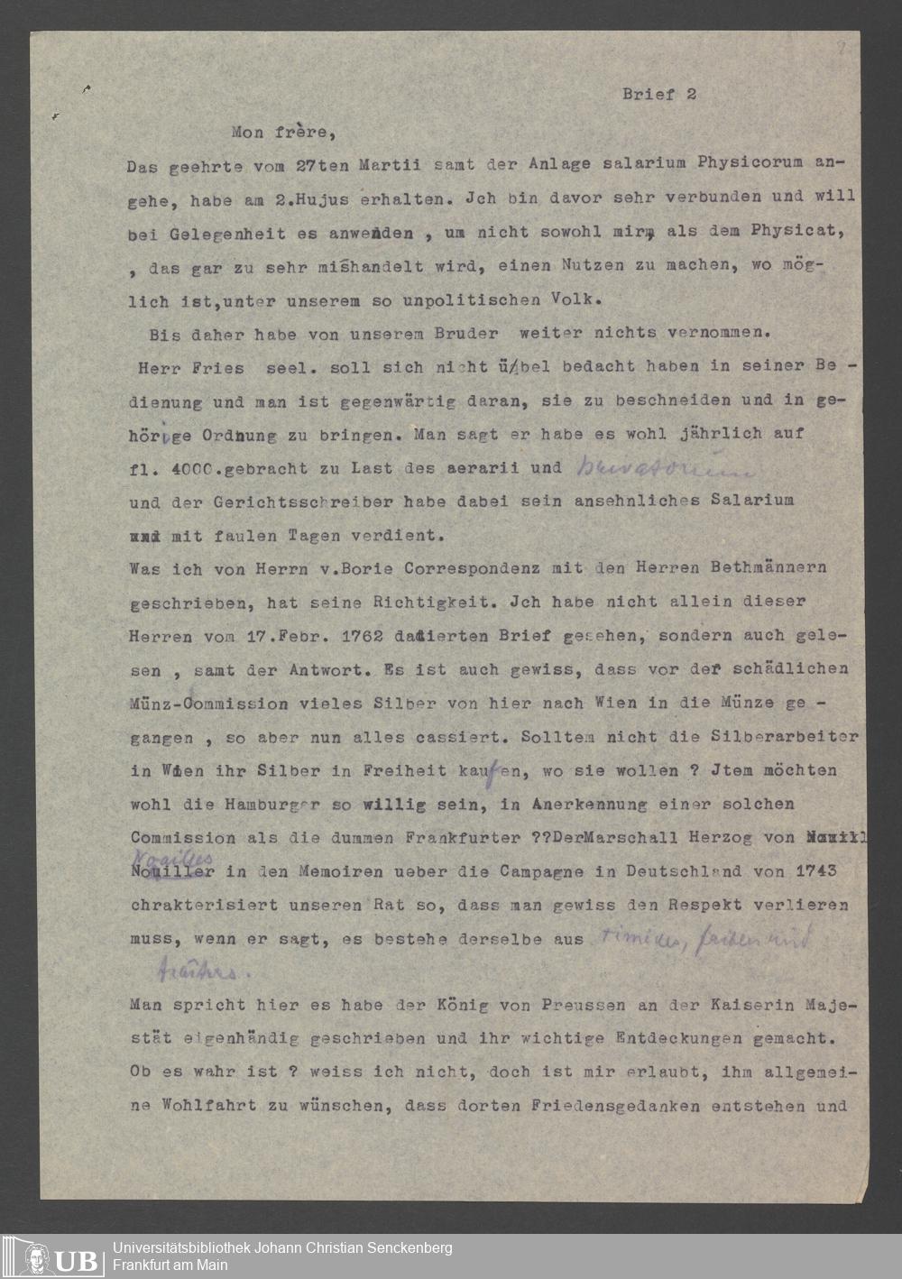 Na 31 Nachlass Johann Christian Senckenberg, 352 - Briefe Heinrich Christian Senckenbergs