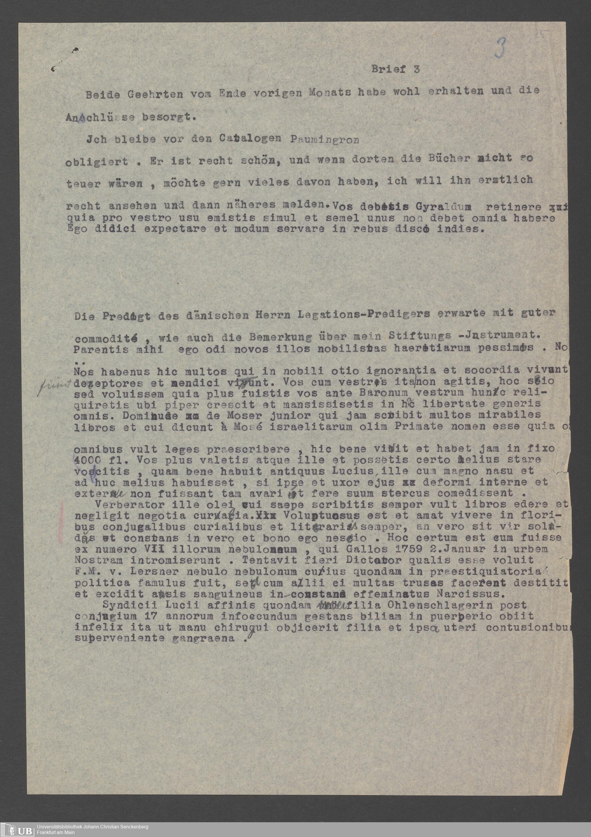 Na 31 Nachlass Johann Christian Senckenberg, 352 - Briefe Heinrich Christian Senckenbergs
