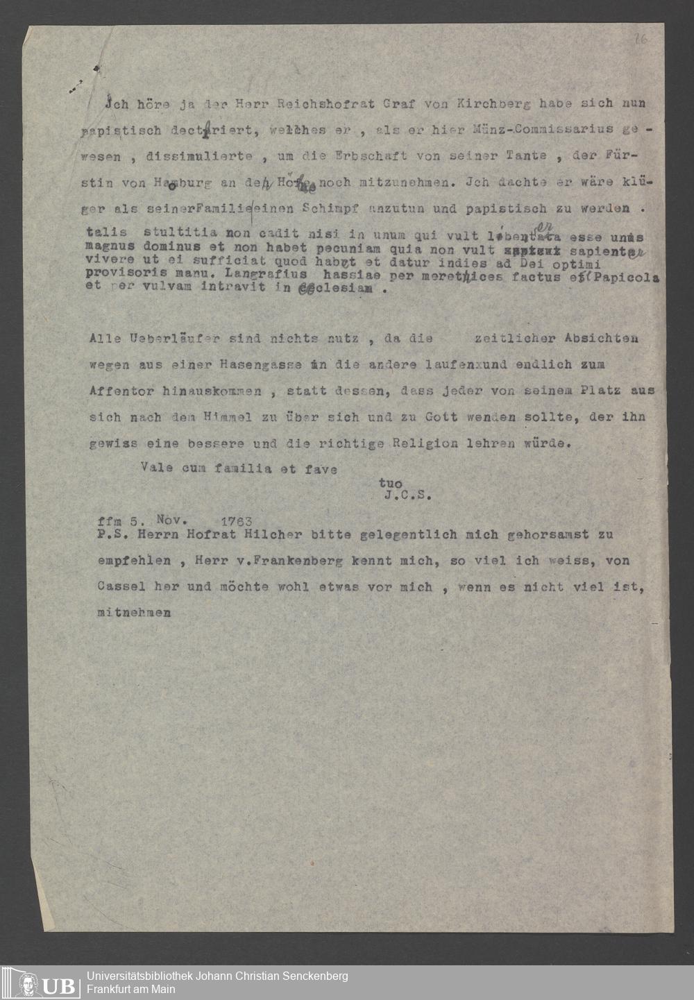 Nachlass Johann Christian Senckenberg