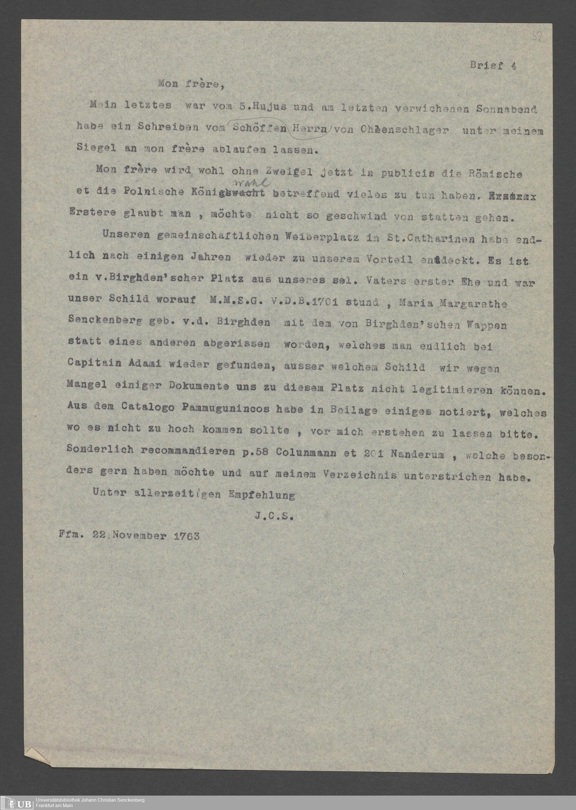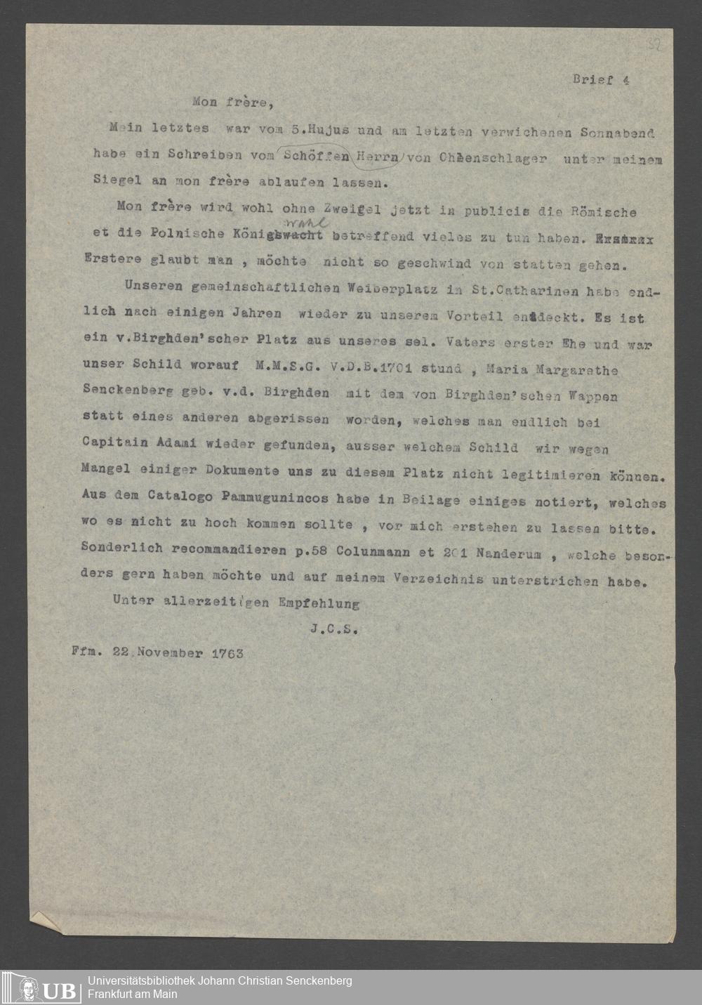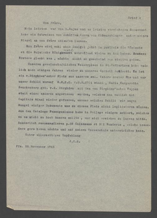 Na 31 Nachlass Johann Christian Senckenberg, 352 - Briefe Heinrich Christian Senckenbergs
