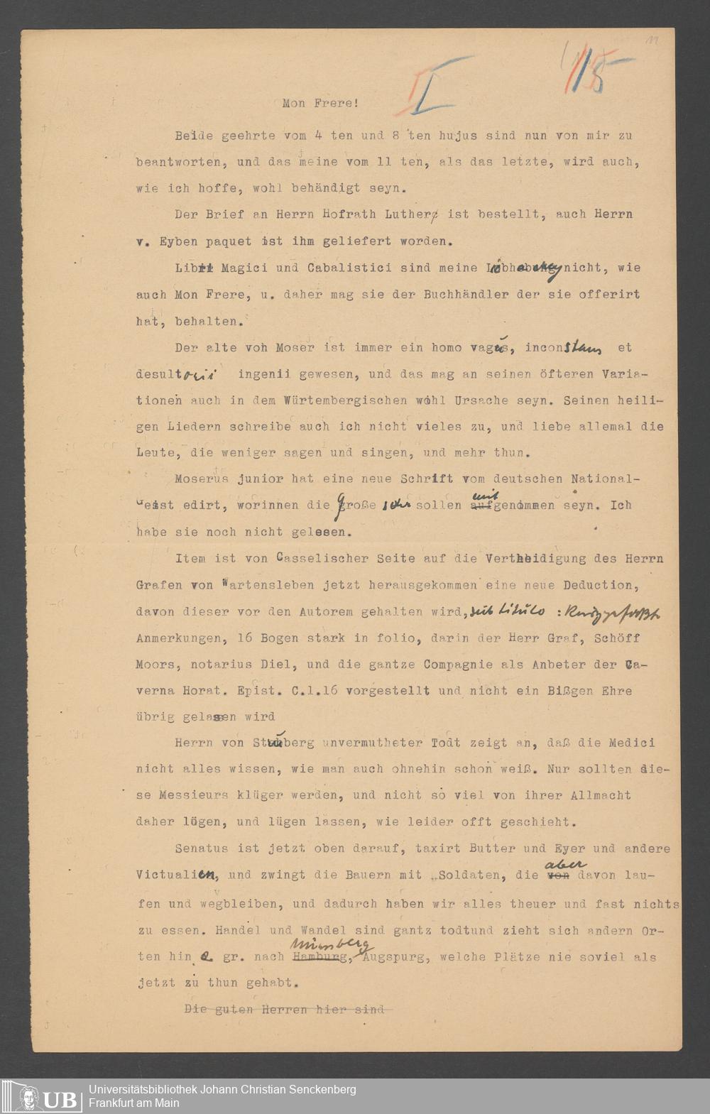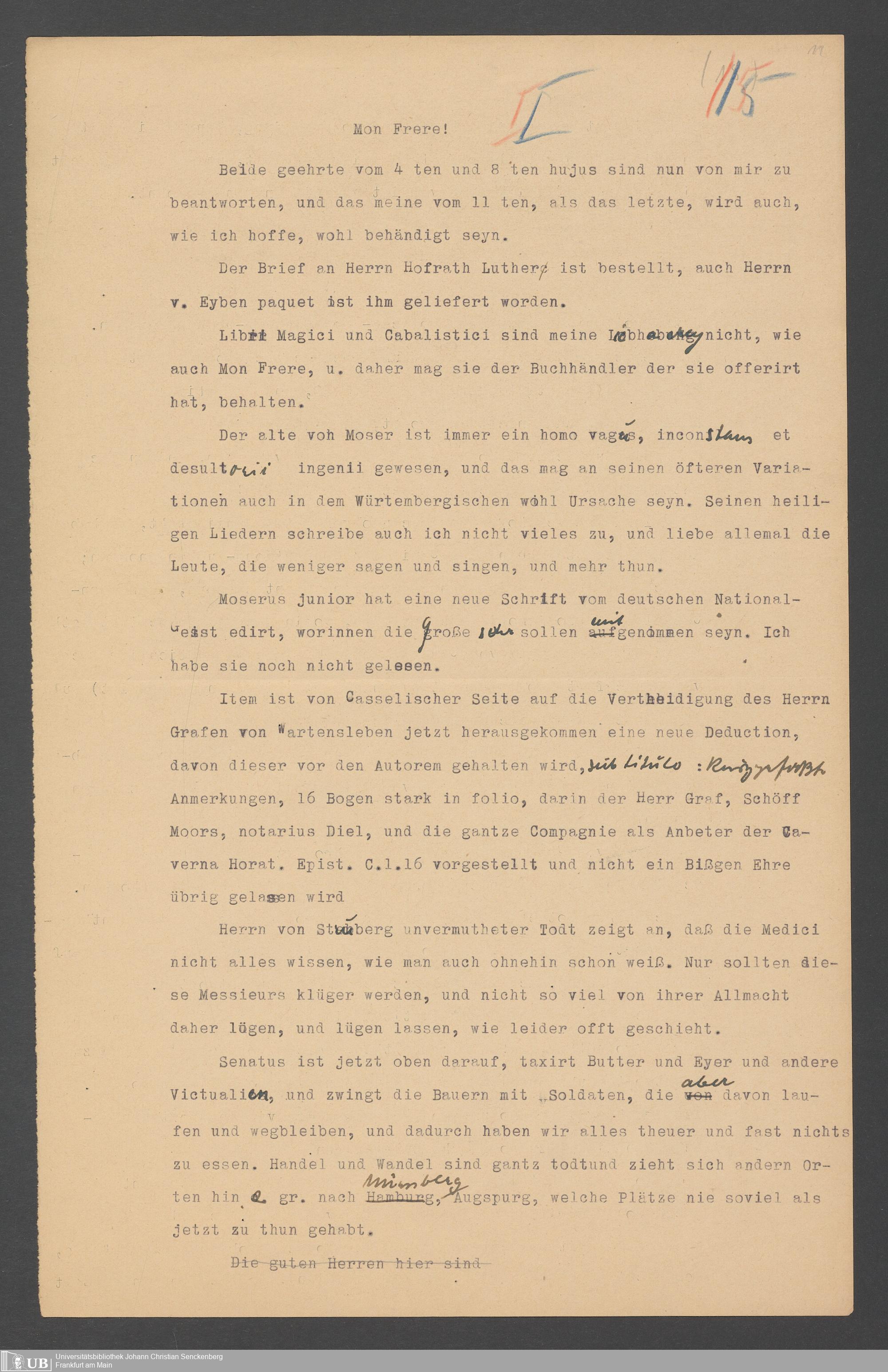 Na 31 Nachlass Johann Christian Senckenberg, 354 - Briefe Heinrich Christian Senckenbergs