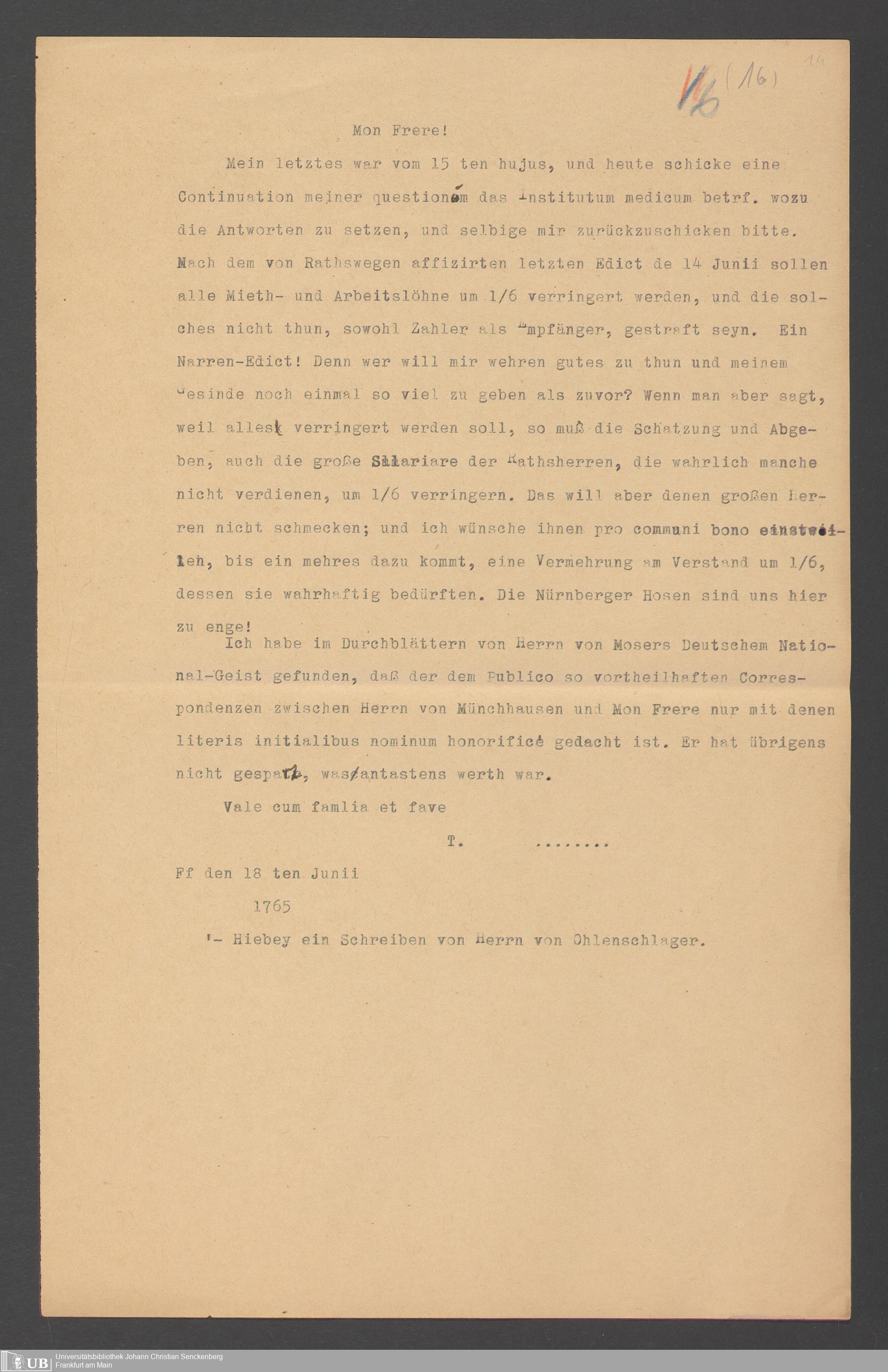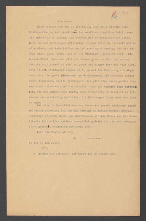 Na 31 Nachlass Johann Christian Senckenberg, 354 - Briefe Heinrich Christian Senckenbergs