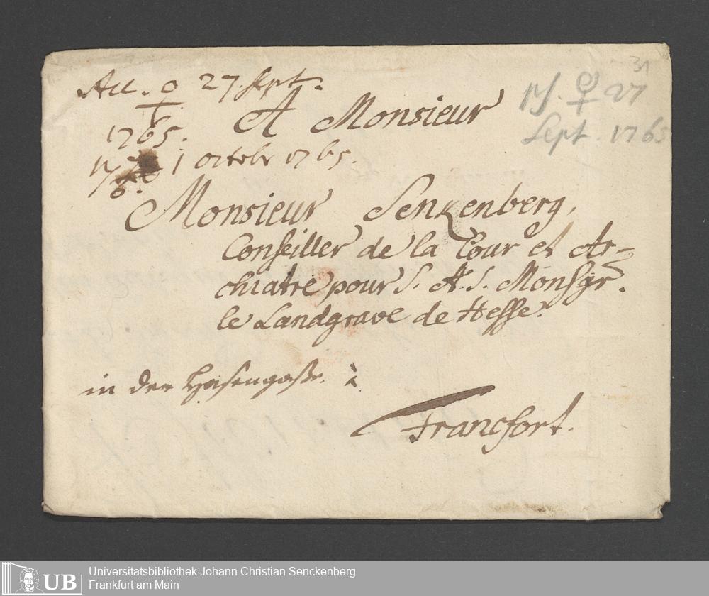 Na 31 Nachlass Johann Christian Senckenberg, 354 - Briefe Heinrich Christian Senckenbergs