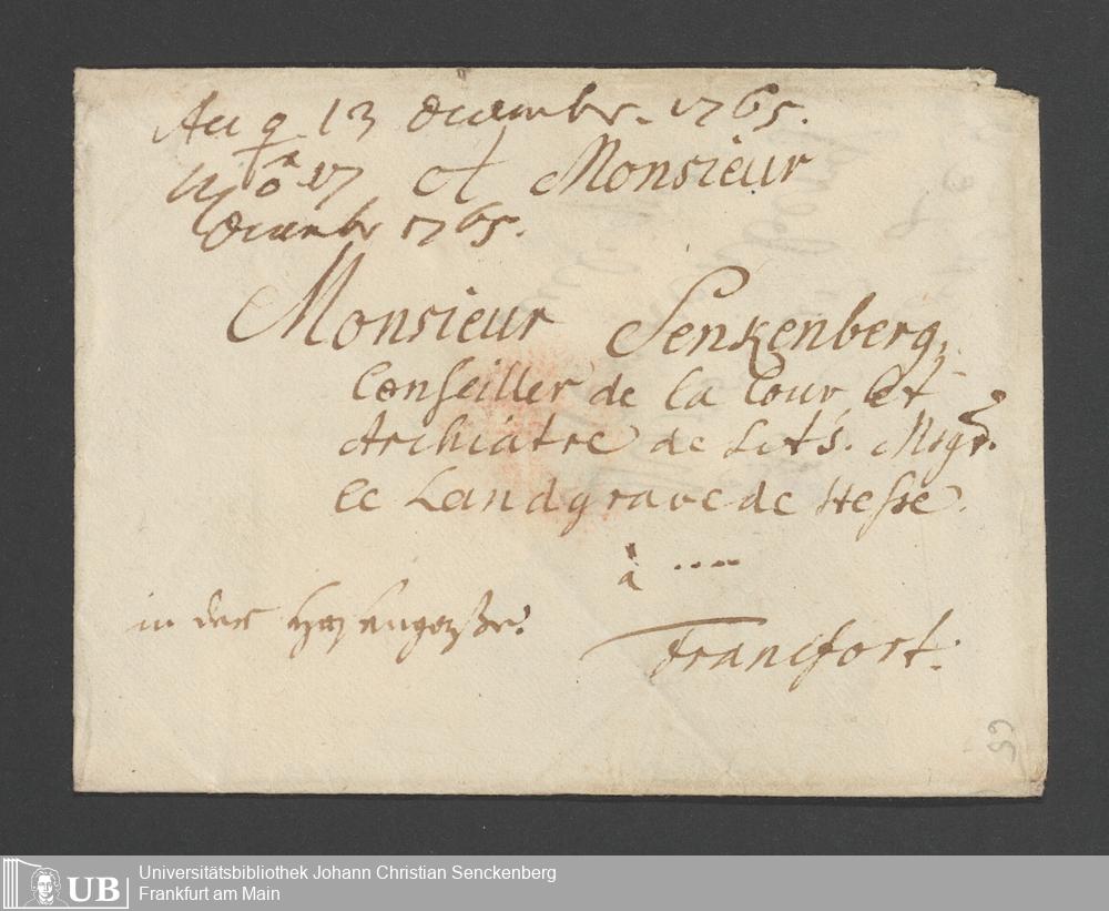 Na 31 Nachlass Johann Christian Senckenberg, 354 - Briefe Heinrich Christian Senckenbergs