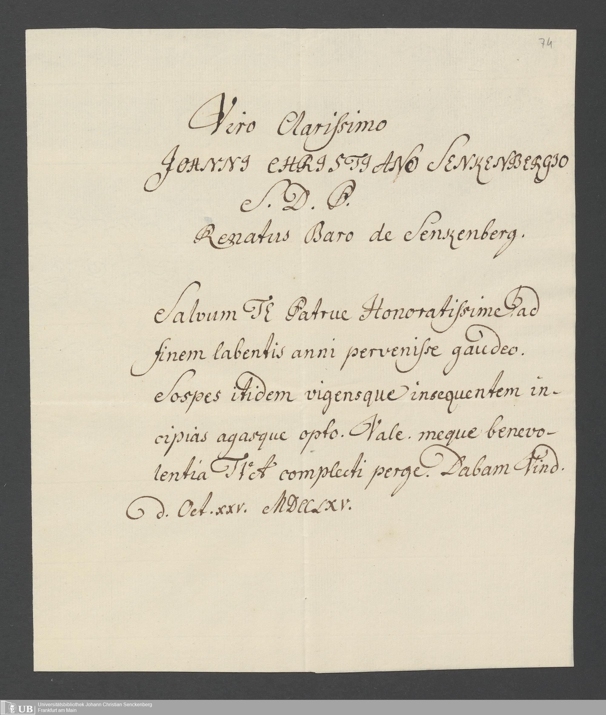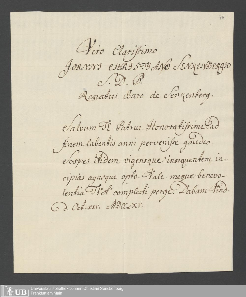 Na 31 Nachlass Johann Christian Senckenberg, 354 - Briefe Heinrich Christian Senckenbergs