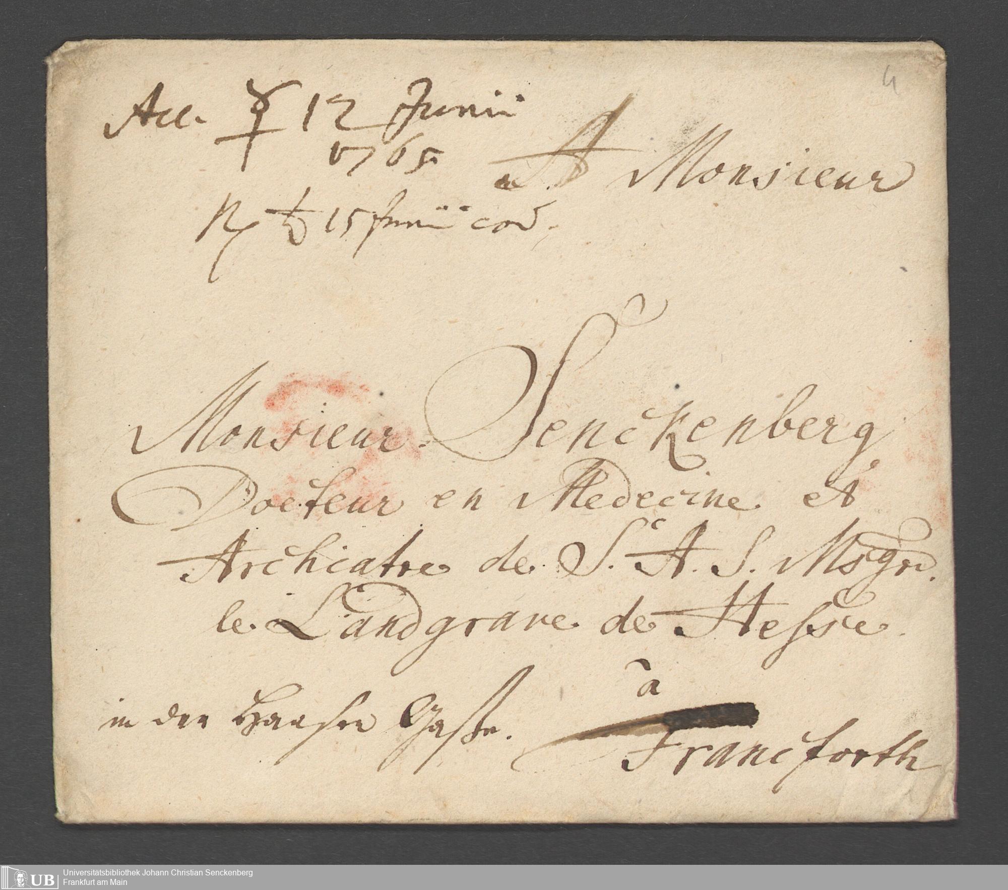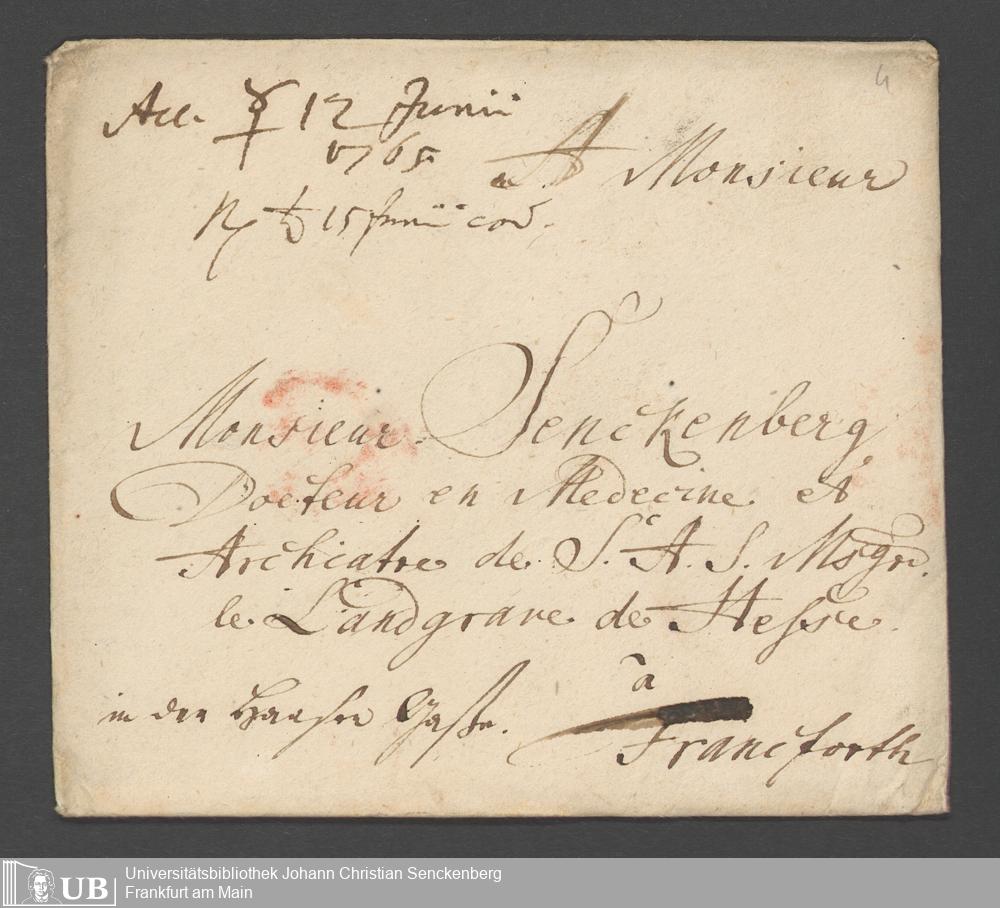 Na 31 Nachlass Johann Christian Senckenberg, 355 - Briefe Heinrich Christian Senckenbergs