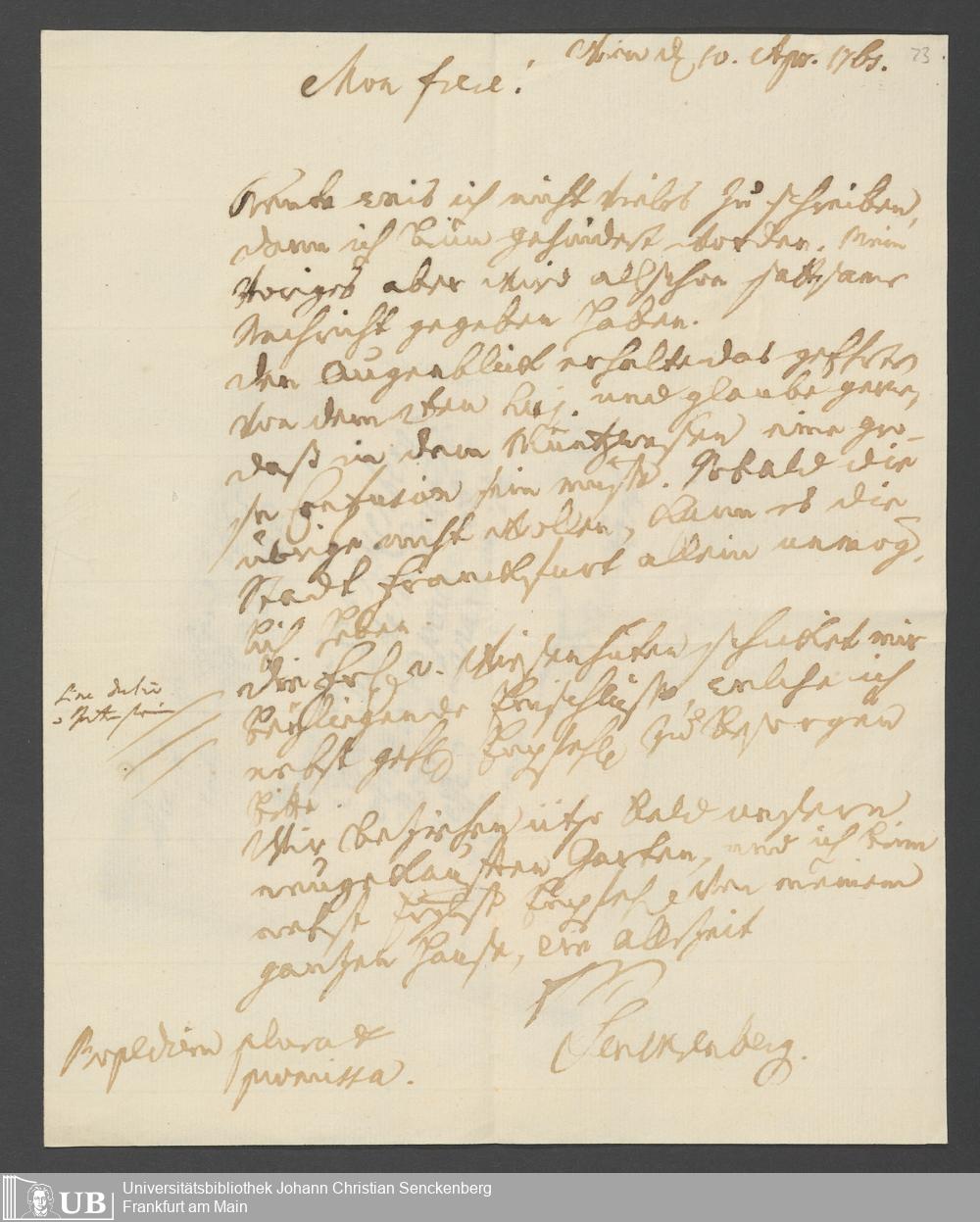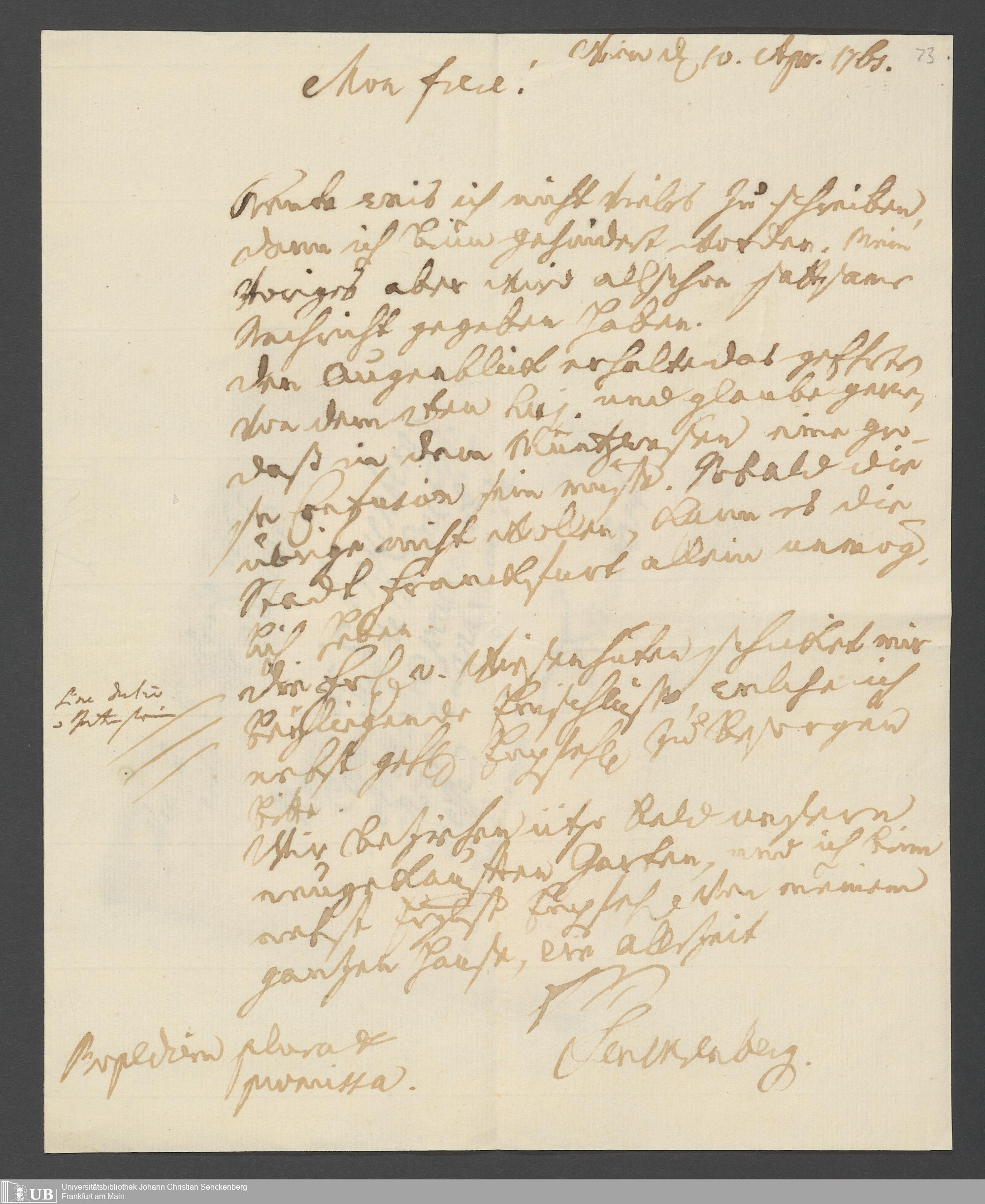 Na 31 Nachlass Johann Christian Senckenberg, 355 - Briefe Heinrich Christian Senckenbergs