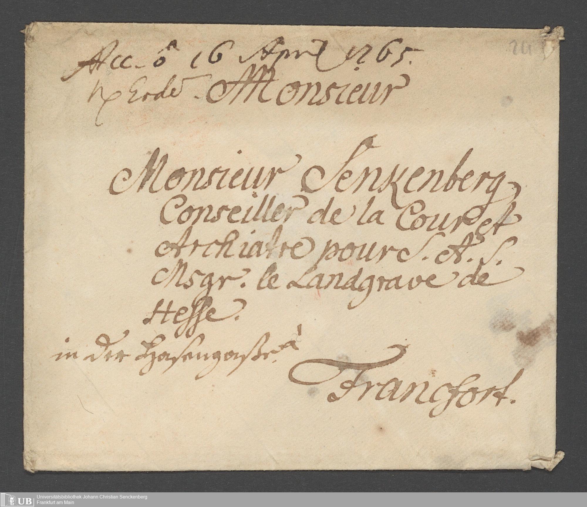 Na 31 Nachlass Johann Christian Senckenberg, 355 - Briefe Heinrich Christian Senckenbergs
