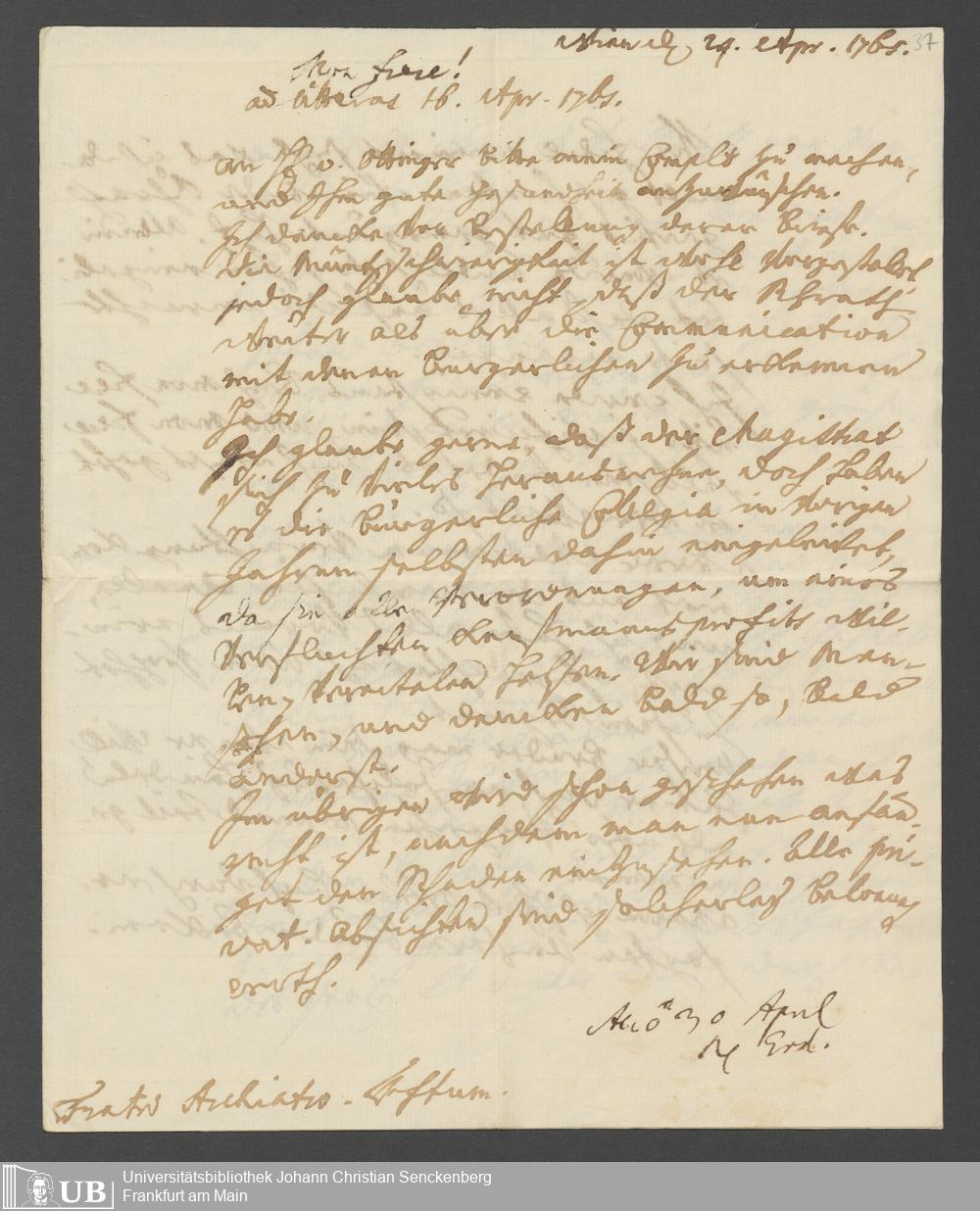 Na 31 Nachlass Johann Christian Senckenberg, 355 - Briefe Heinrich Christian Senckenbergs