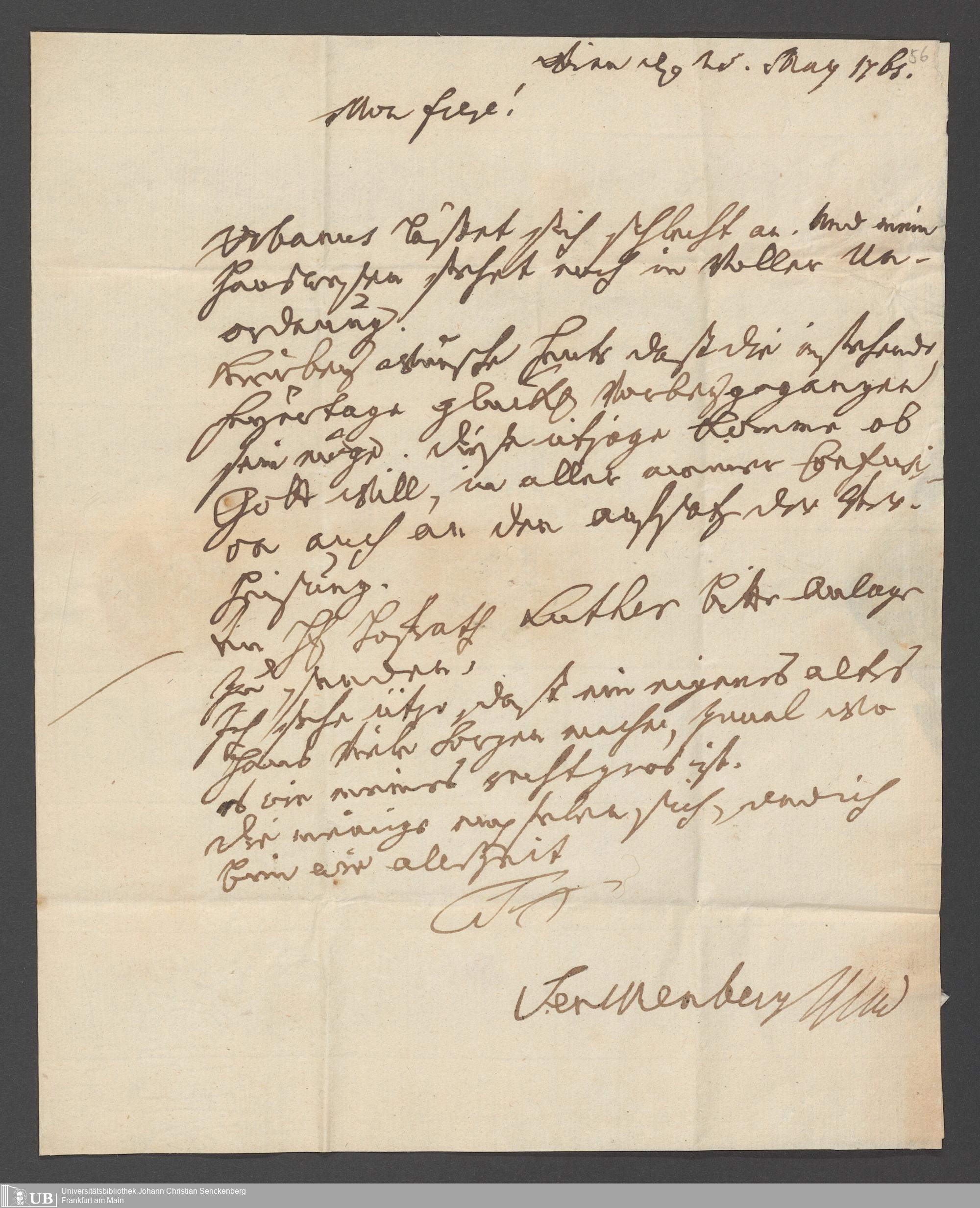 Na 31 Nachlass Johann Christian Senckenberg, 355 - Briefe Heinrich Christian Senckenbergs