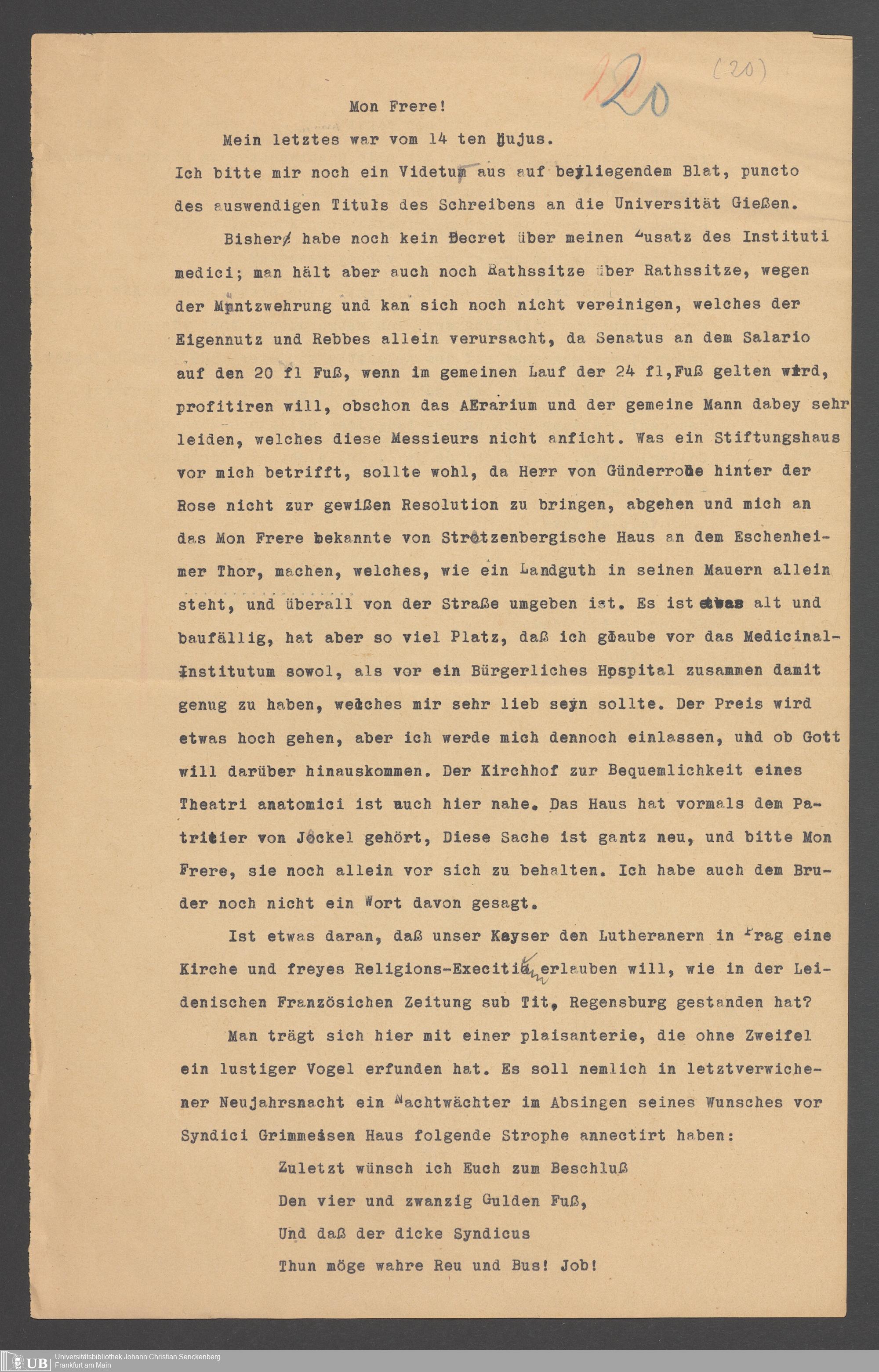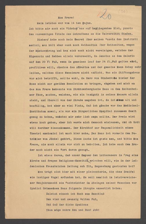 Na 31 Nachlass Johann Christian Senckenberg, 356 - Briefe Heinrich Christian Senckenbergs
