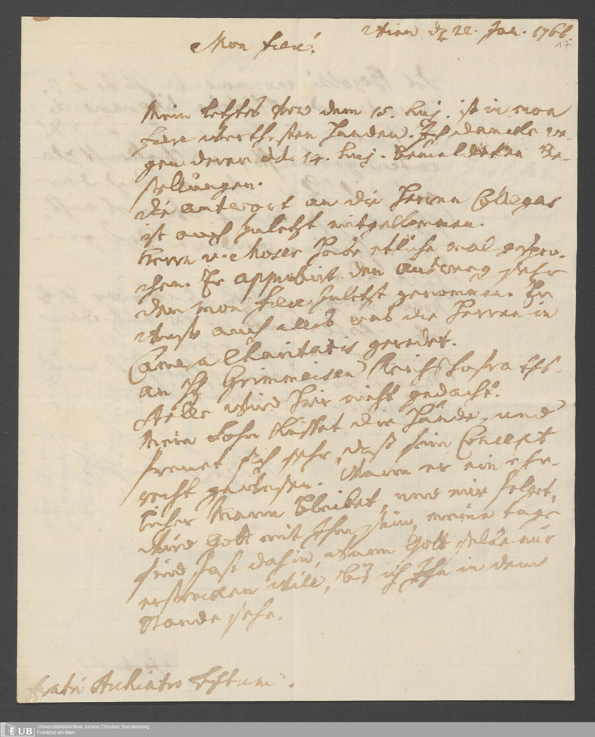 Na 31 Nachlass Johann Christian Senckenberg, 356 - Briefe Heinrich Christian Senckenbergs